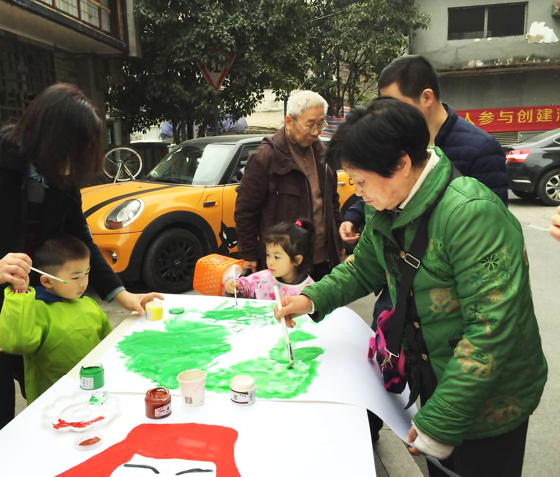 活动分为两个部分:绿色绘制和绿色交换。在绿色绘制中,志愿者们与社区居民一起绘制了三副海报。其中名为“经院牵手葵巷”的海报中,象征a漫