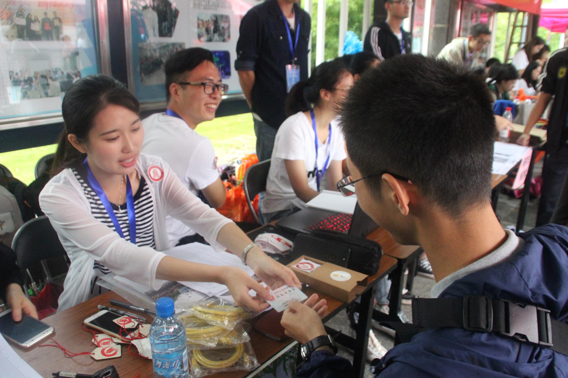 报名点陆续迎来来自五湖四海的莘莘学子,尽管雨很大,但迎新工作仍然有条不紊的进行。