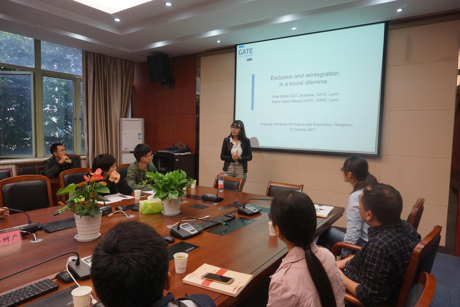 在讲座中,Villeval教授首先强调了社会排斥机制在保证社会困境问题中合作的重要性,列举了心理学和经济学中的许多相关研究文献,并发现关于群体排斥后再次吸纳被排斥成员进入群体的相关研究极少。Villeval教授与合作者研究了这一重要问题,她们使用一个公共物品实验考察当群体成员可以投票将不合作排斥出群体一定时间后允许被排斥者再次进入群体的情况下的合作效率问题。为了考察排斥期间和个人的善意程度对行为的影响,研究中在不同的实验组变化了排斥出群体的时间长度和这一长度是否由群体成员内生决定。实验发现当排斥的期间由群体成员决定时,短期的社会排斥机制对合作行为具有积极的影响,快速的重新吸纳被排斥成员减少了报复行为。这一研究成果是关于人类合作这一重大问题的最新进展,有助于深入理解社会排斥机制在合作行为中扮演的决策,同时也为促进群体合作的政策机制指明了方向。