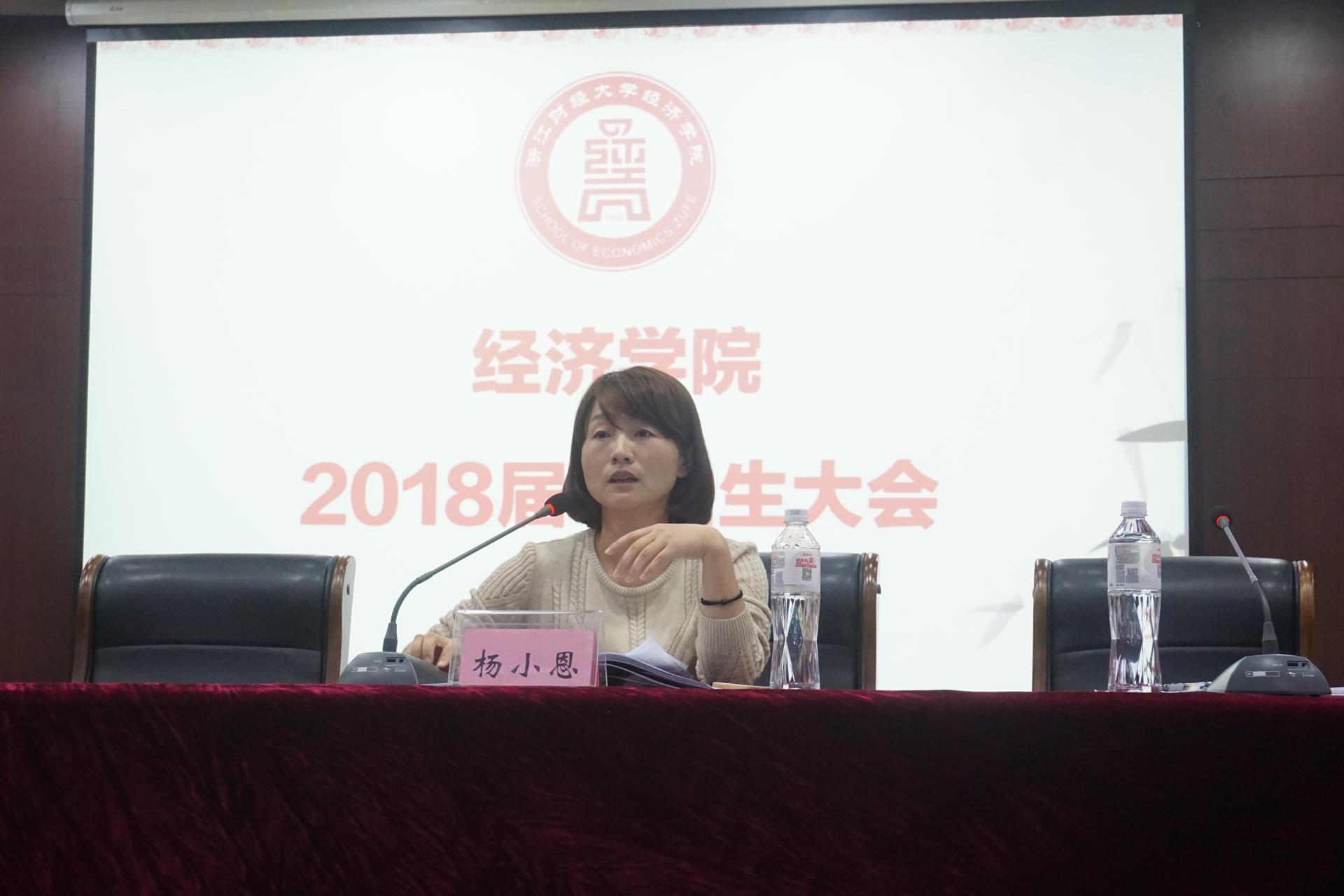 2018届毕业生大会”。副院长柴志贤、学院党委副书记杨小恩、教学办高晓菁老师、毕业班辅导员及全体毕业生参会。