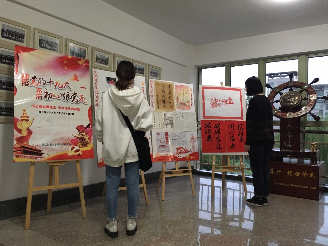 党委推出“喜迎十九大”丰碑十八次党代会极简史展览,在学院楼一楼组织展出了十八次党代会极简史展板,方便师生共同回顾、学习历届党代会的内容精神;举办了以“迎接党的十九大,不忘初心跟党走”为主题的书画展,广泛地向同学们征集了书法、手抄报、剪纸、漫画等各种形式的作品,借此来表达对党的美好祝愿;开展“忆红色岁月 扬红船精神”—老党员采访展,师生党员暑假走访浙江省11个地市采访20余名老党员,向老党员们学习致敬。