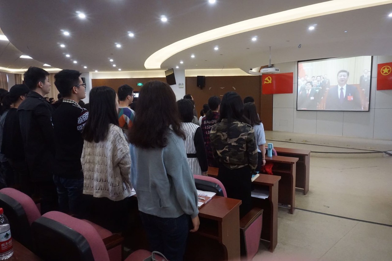 党委积极组织了师生党员和团学干部集中在学院楼219会议厅观看学习中国共产党第十九次全国代表大会开幕式直播并展开热议。