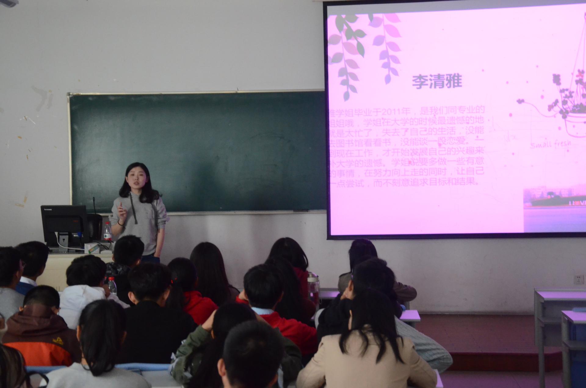 校友杨文作为学生社团校友导师与学生会艺术团同学见面交流,洪晓燕、毕彦魁、袁璐、应珊珊、朱令群、李清雅、黄栋、张珊珊等八位校友作为班级校友导师到17级各班与同学们进行面对面交流。