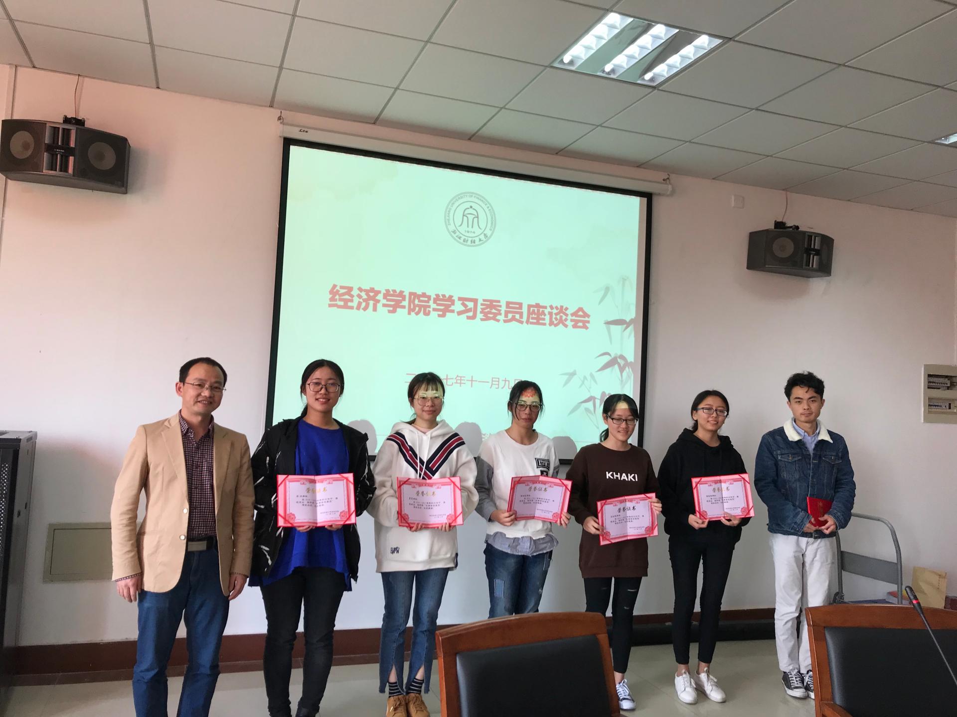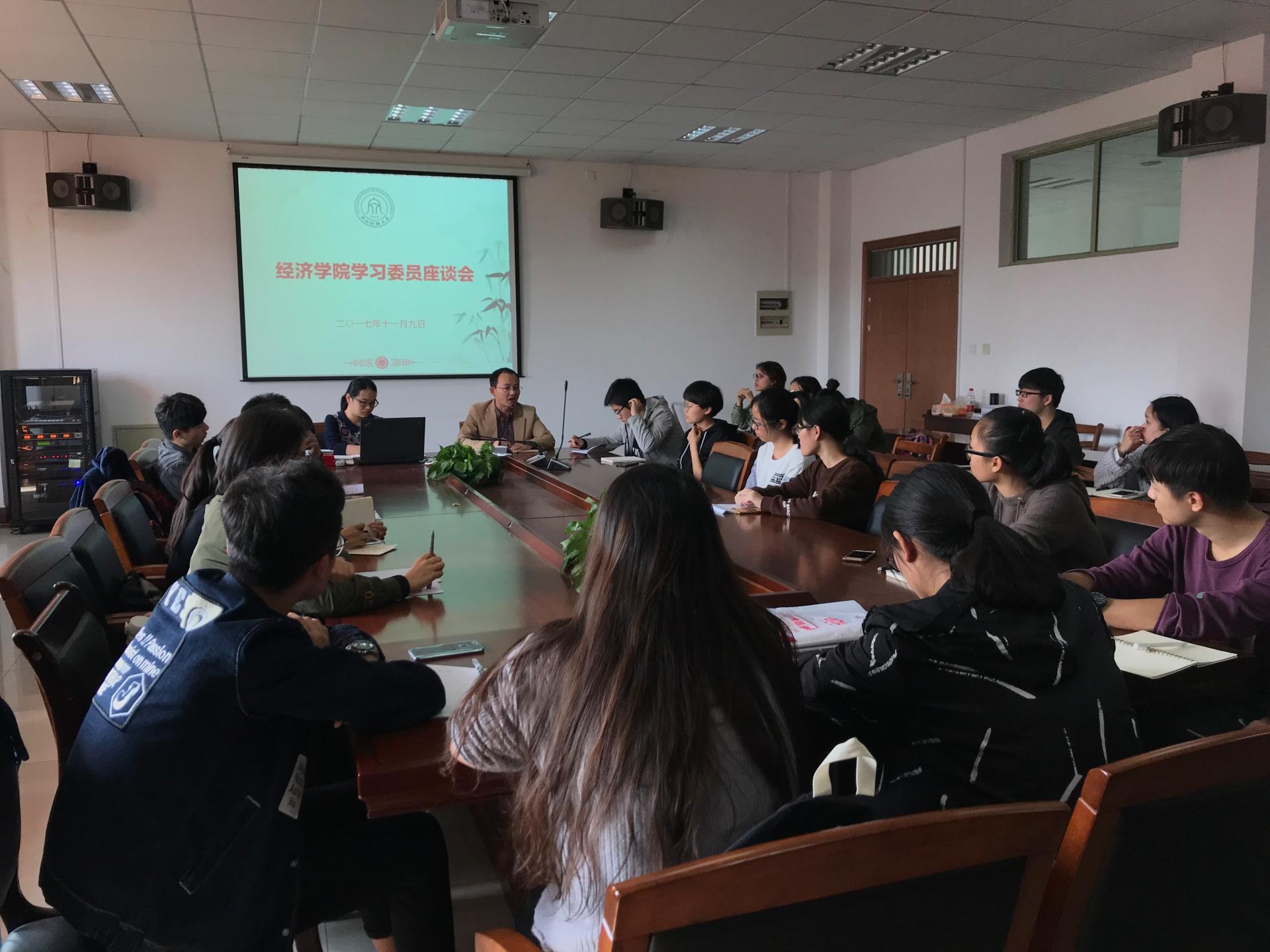 在学院楼210会议室举行了全体学习委员座谈会和2016-2017学年优秀学习委员表彰大会。教学院长柴志贤、教学办老师高晓菁和全体学习委员参加了会议。