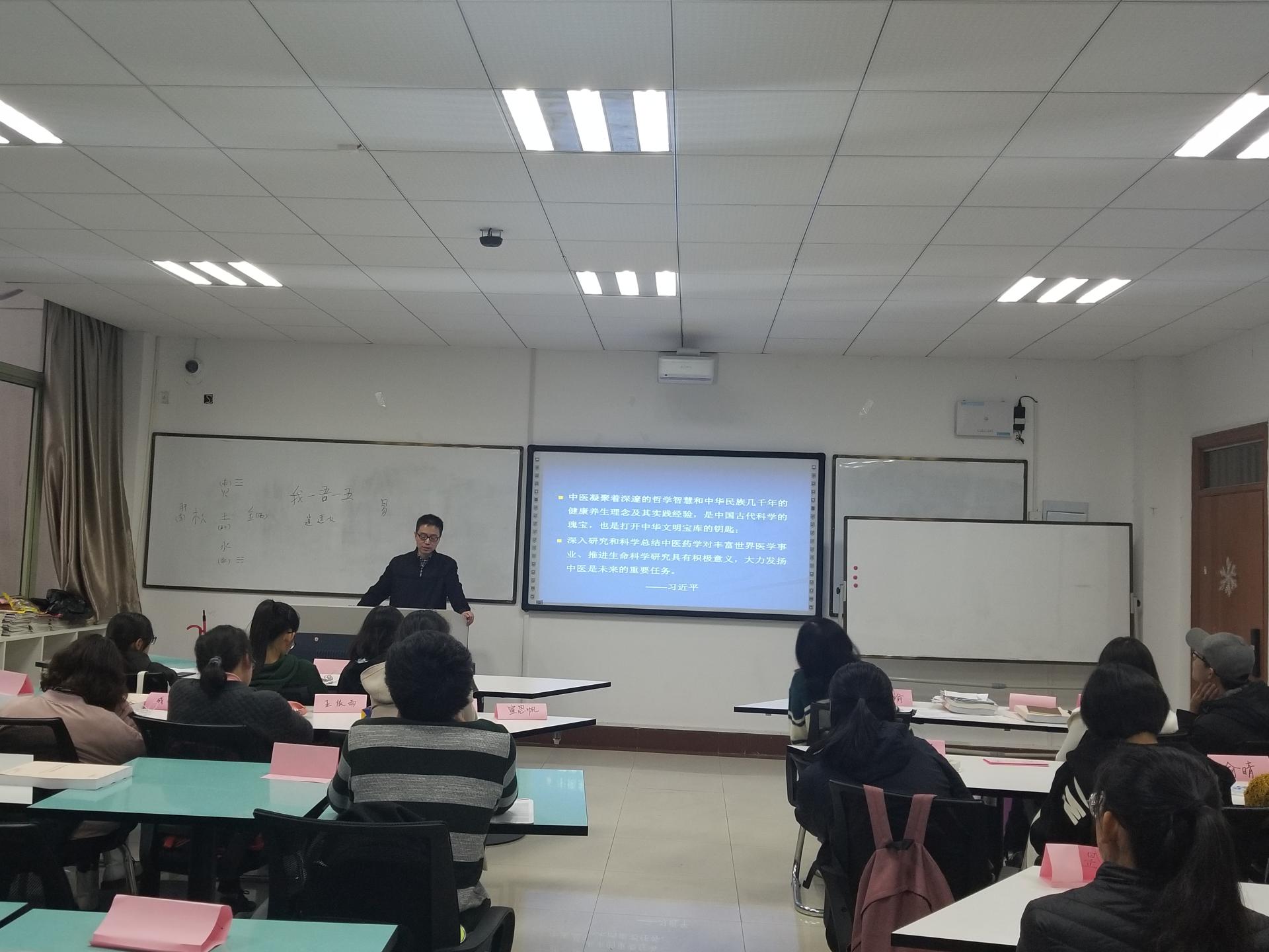 赵博士深研中医经典,重视六经辨证,擅长中医药治疗,在seminar上,他给同学们介绍了金木水火土五行的相关知识以及传统文化对日常生活的影响,同时,他指出中西医是有很大差别的,“中医是治得病的人,西医是治得的病”。同学们兴趣盎然、收获颇丰。随后,同学们踊跃向赵博士提问,赵博士也从多方面为大家详细解答。最后,这场别开生面的seminar在大家热烈的掌声中结束,它带同学们感受了不一样的知识,增加了同学们对中华以及中医传统文化的认识。