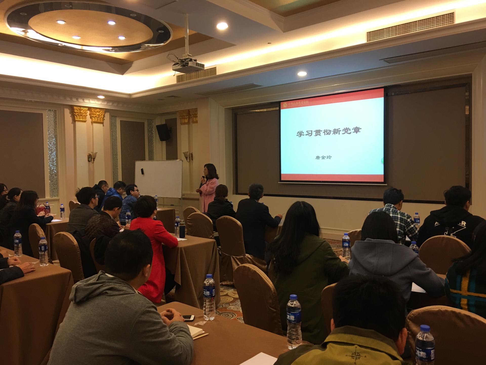 在学习环节,学院邀请了江苏省委党校唐金玲教授上了《学习贯彻新党章》的专题党课。唐教授以翔实的史料全面讲解了加强党性修养的重要性,全面梳理了中国共产党从一大党纲到十九大的新党章的修正历程和主要内容,重点阐述了党的十九大审议通过的党章修正案,把习近平新时代中国特色社会主义思想写入党章,作为中国共产党的指导思想的重大意义。