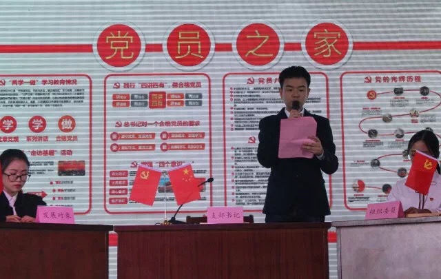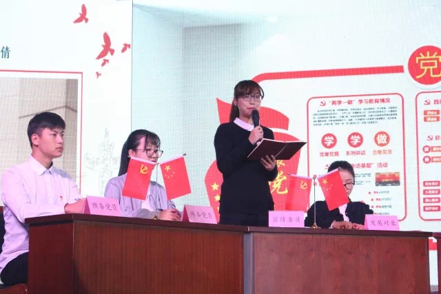 本科生第二党支部书记崔泰铭老师带领发展对象和与会党员上台召开学生党员发展大会进行案例式教学。首先入党申请人何小荣同志将自己的基本情况、入党动机、政治觉悟等情况向党组织进行了汇报,随后,入党介绍人、组织委员、与会党员对何小荣同志的情况进行充分汇报交流讨论,并发表自己的意见。在公平公开公正的原则下与会正式党员以不记名投票方式决定接收何小荣同志为中共预备党员。