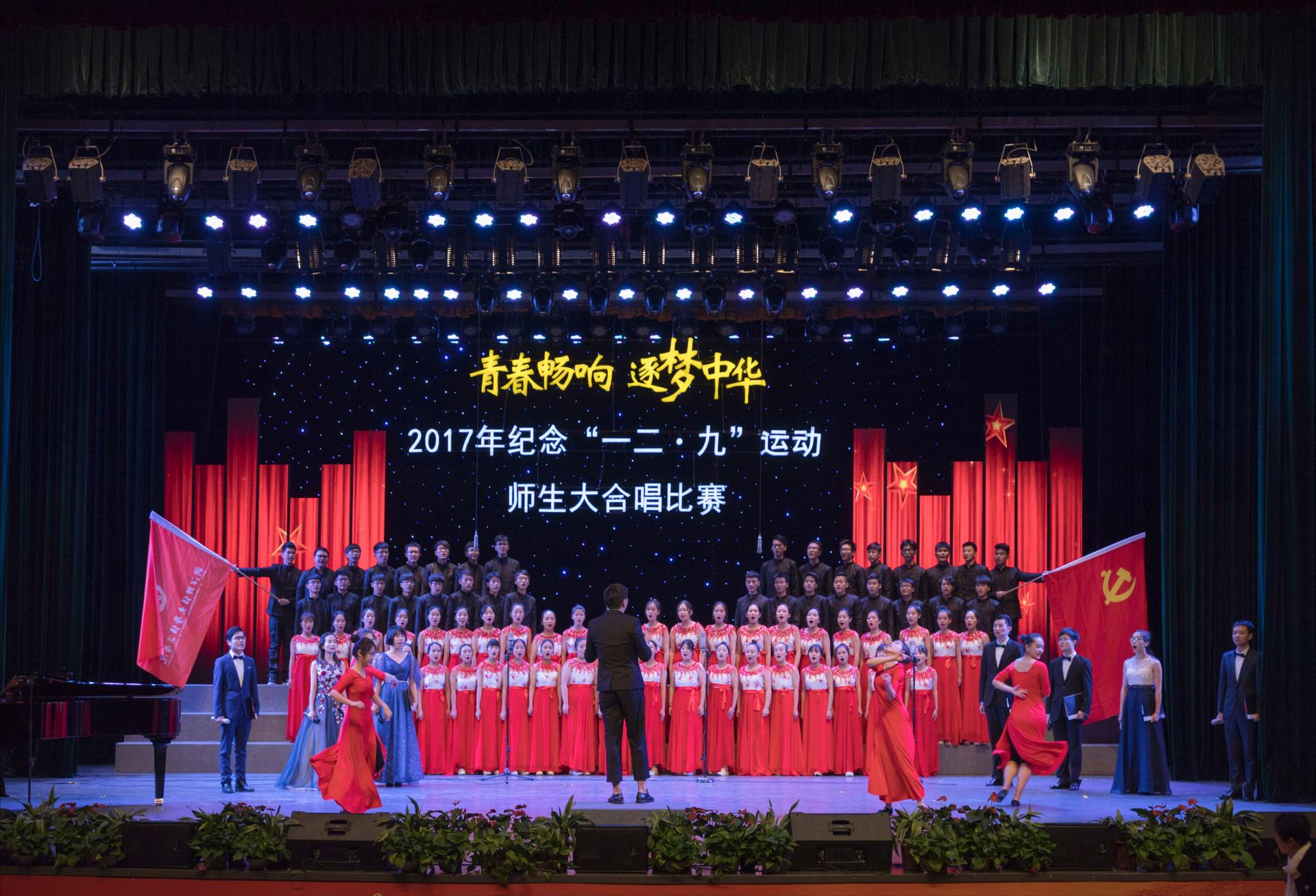 12月12日下午两点,为纪念“一二·九”运动,我校在文化中心隆重举行了以“青春畅响,逐梦中华”为主题的师生合唱比赛,由a漫