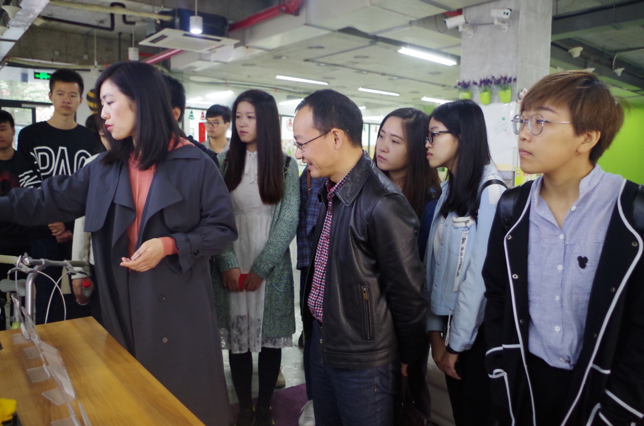 师生一行还参观了“蜂巢”、“朴器”两个在业内有较大影响力的孵化器。“蜂巢”杭州区负责人鲍海霞女士详细介绍了蜂巢的创业孵化实践经验,他们根据创业者的IDEA、项目的市场容量及技术可操作性进行筛选,安排导师对有潜力的项目进行培训,加快项目的成长或失败。该孵化器是小镇内八个国家级孵化器之一,孵化出了3D打印机场景实现、智能兑奶粉机等一批已经落地的潜力项目。
