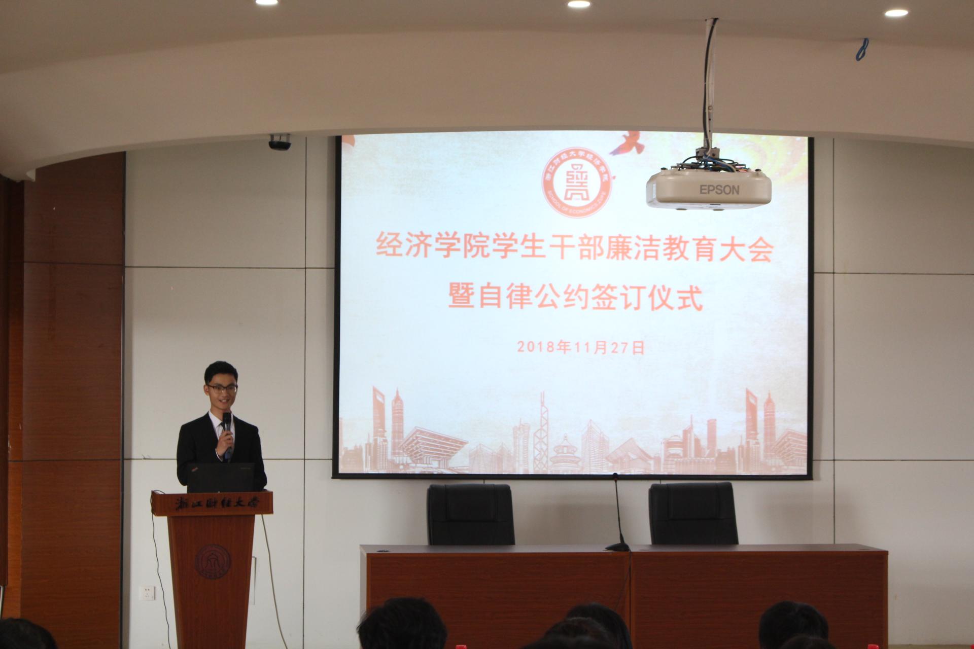 于11月27日下午举办学生干部廉洁教育大会暨自律公约签订仪式。学院党委书记沈水法、党委副书记杨小恩、全体辅导员和学院团委、学生会、研究生会、社团、党员工作站、心理工作站、校友服务中心、班团等部门近150余名学生干部参加会议。