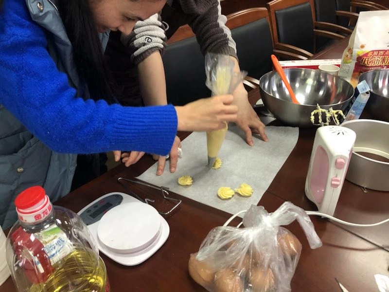 活动第二个阶段,烘焙老师首先向大家讲解介绍了制作曲奇饼干、蛋糕DIY相关知识。随后,大家在老师的示范和指导下,自己动手体验。随着烤箱中散发出一阵阵让人垂涎欲滴的香味,现场气氛达到了高潮。活动结束后,品尝着自己的劳动成果,大家觉得很有成就感,也感受到了烘焙的乐趣。