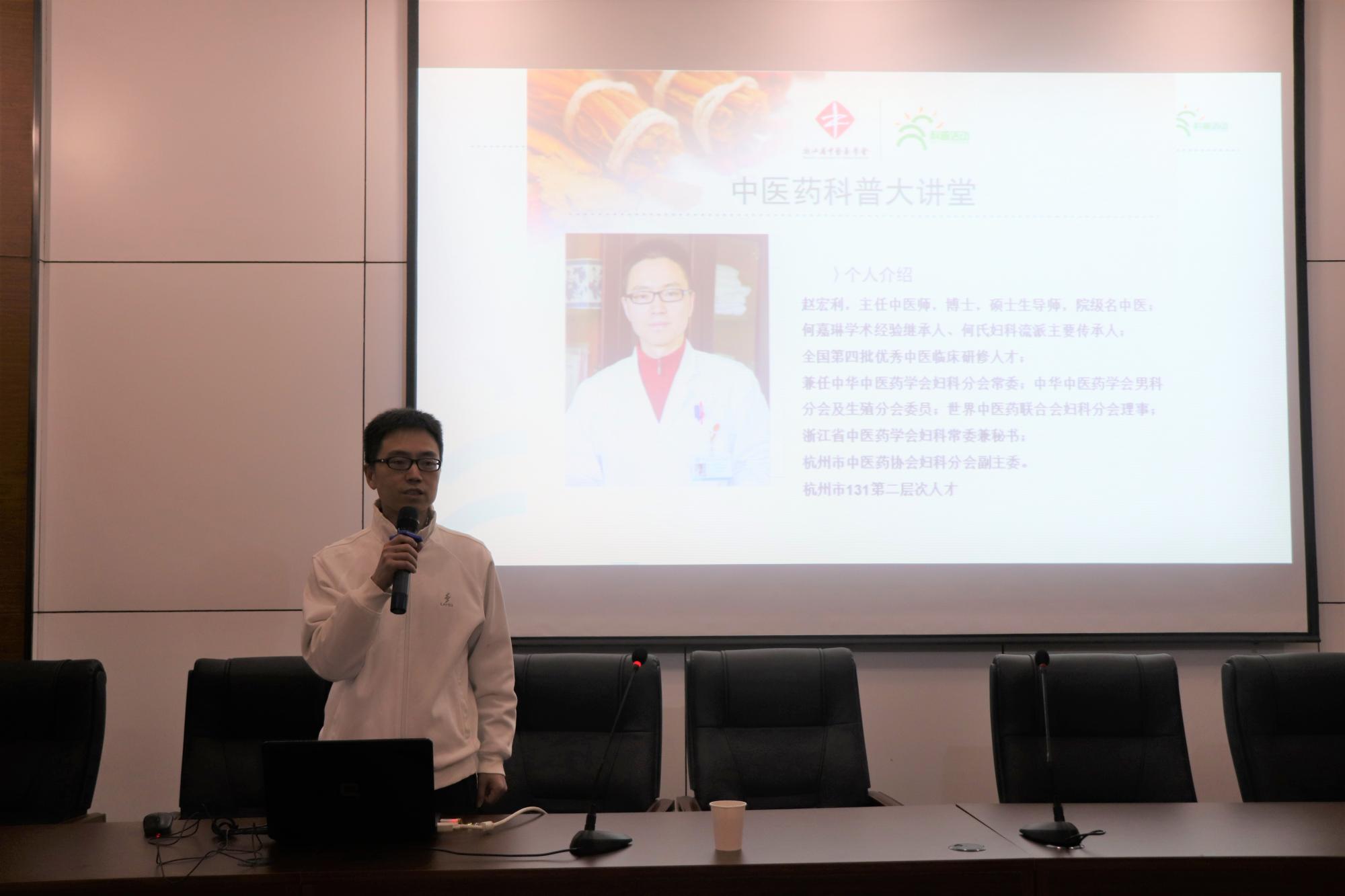 与通识中心共同组织的中医养生进校园在7-112报告厅如期开讲,本次讲座由柴志贤副院长主持。赵宏利主任中医师为何嘉琳学术经验继承人及院级名中医,他为大家带来了一场别开生面的养生讲座,主题为“古本易筋经养生十二式”。