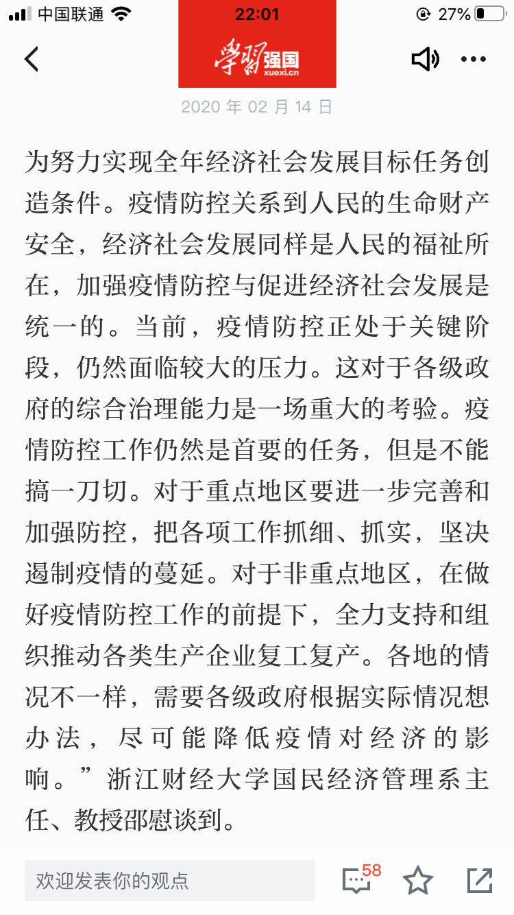 在疫情当下,教工第一支部党员邵慰教授充分发挥学科优势,积极建言献策,在人民网文章《工作越吃劲越要毫不放松 习近平强调抓实抓细抓落地》中指出“加强疫情防控与促进经济社会发展是统一的”,为社会各界疫情防控及完善相关政策提供参考。随着学校正式线上开课,a漫