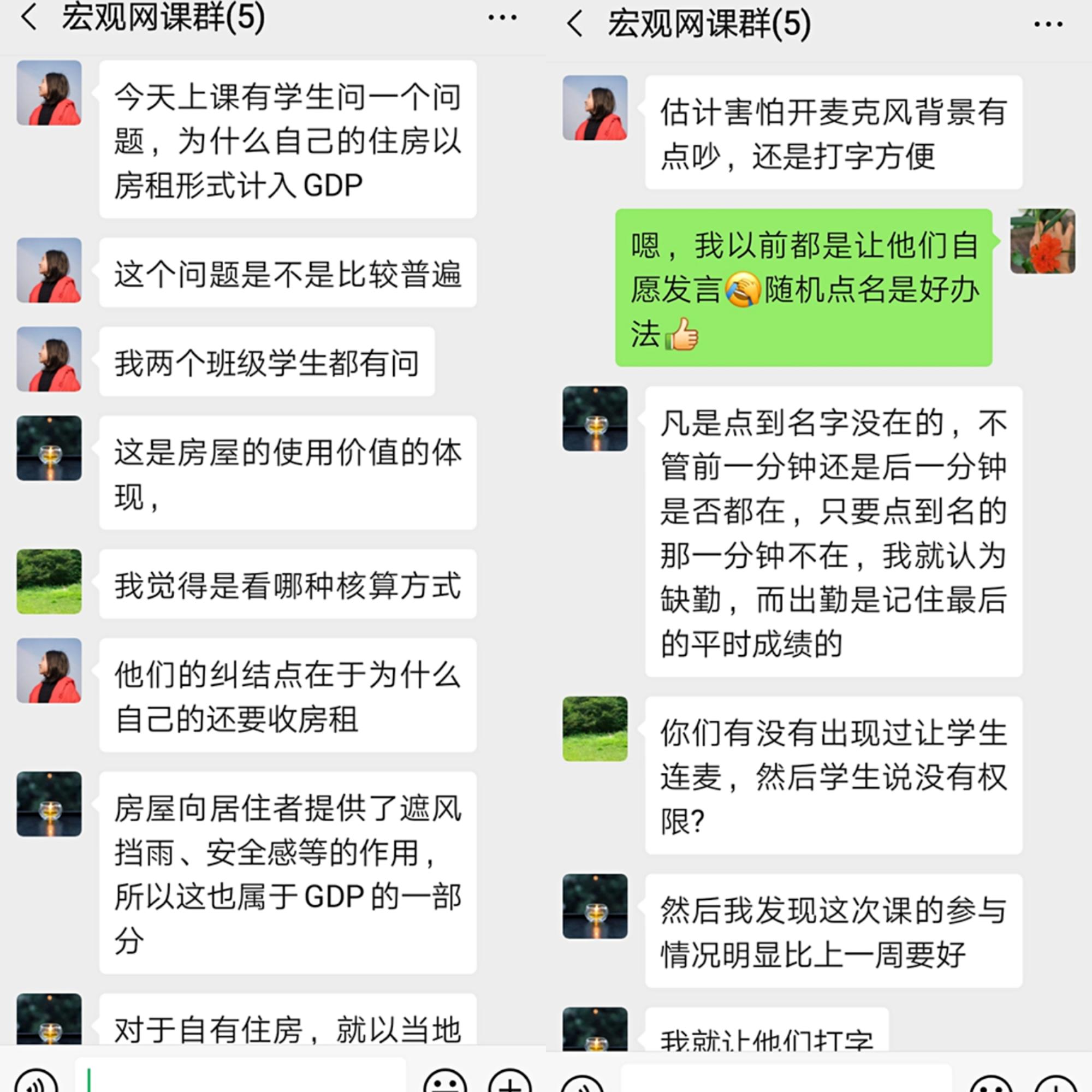 在课后,团队成员针对授课及答疑环节存在的主要问题、学生的反馈情况及线上教学效果等在微信群中进行深入讨论和研究,提出进一步改进的意见,并在下次课堂教学中付诸实施。