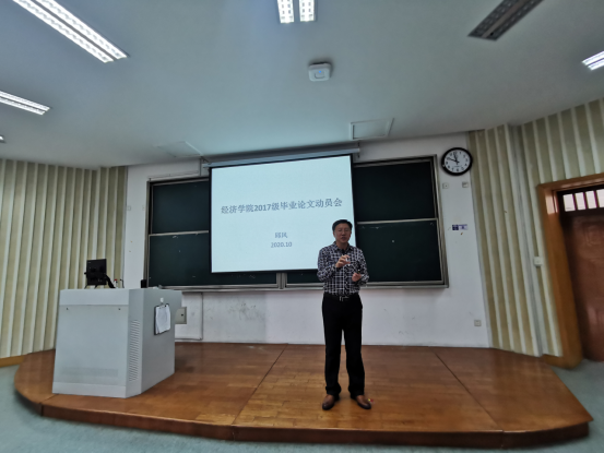 在学院楼311教室举行了2021届本科毕业生毕业论文动员大会。经济学专业负责人邱风教授担任本次大会的主讲,指导学生如何撰写本科毕业论文。