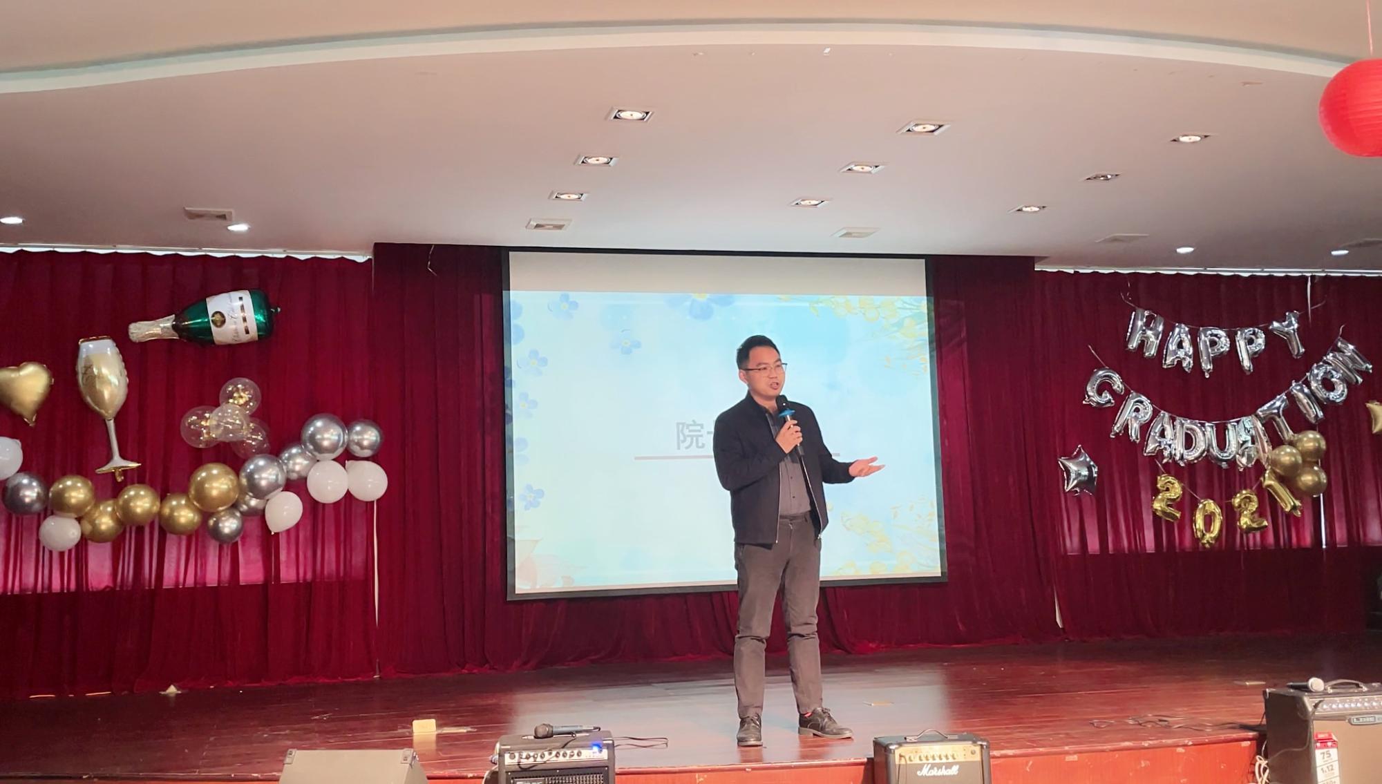 “2021廿你在心”学院研究生毕业晚会在文化中心311多功能火热开幕。副院长罗俊、院党委副书记崔泰铭、团委书记曹仲晔、教学办主任高晓菁、辅导员韦罗成、俞一献、陈秋涵与学院研究生共聚一堂,观看演出,共同度过了一个难忘的毕业之夜。