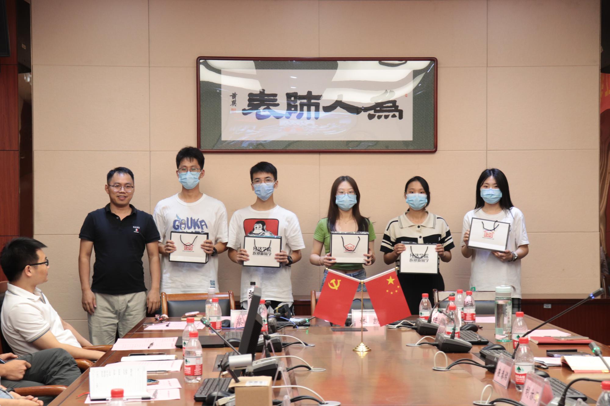 会上,副院长罗俊为新生代表颁发迎新礼包并合影留念。