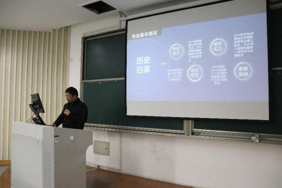 首先,邱风老师给同学们介绍了经济学专业坚实的学科支持、培养模式、教学方法以及就业升学的基本情况,还给学生们分享自身的学习经历和考研小故事,引来阵阵欢笑声。邱老师鼓励大家奋力考研,并结合自身的考研经历,给大家加油打气,增强信心,希望同学们能够拓宽就业的视野和道路。