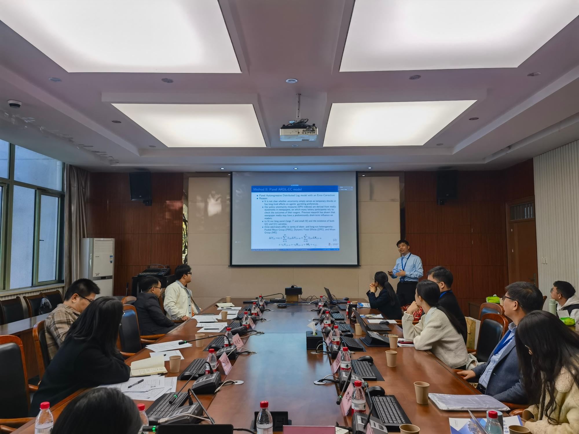 2022级国际贸易学博士研究生严祥武、2023级产业经济学博士研究生孟秀兰和谢新悦分别就《经济发展、空间溢出和城市生态承载力——来自中国285个城市的证据》、《公平竞争审查制度能抑制企业脱实向虚吗?》、《虚拟集聚的基本特征、产生逻辑与典型模式》做论文汇报和交流。