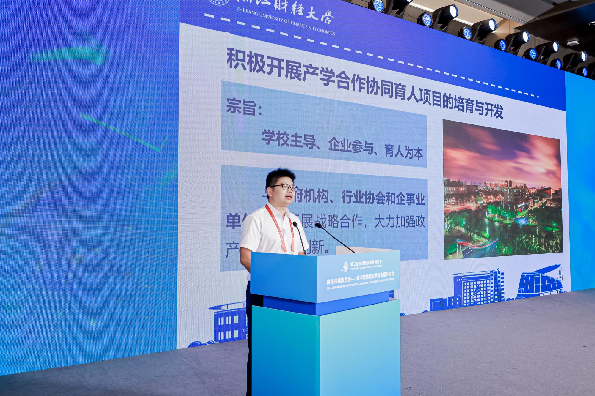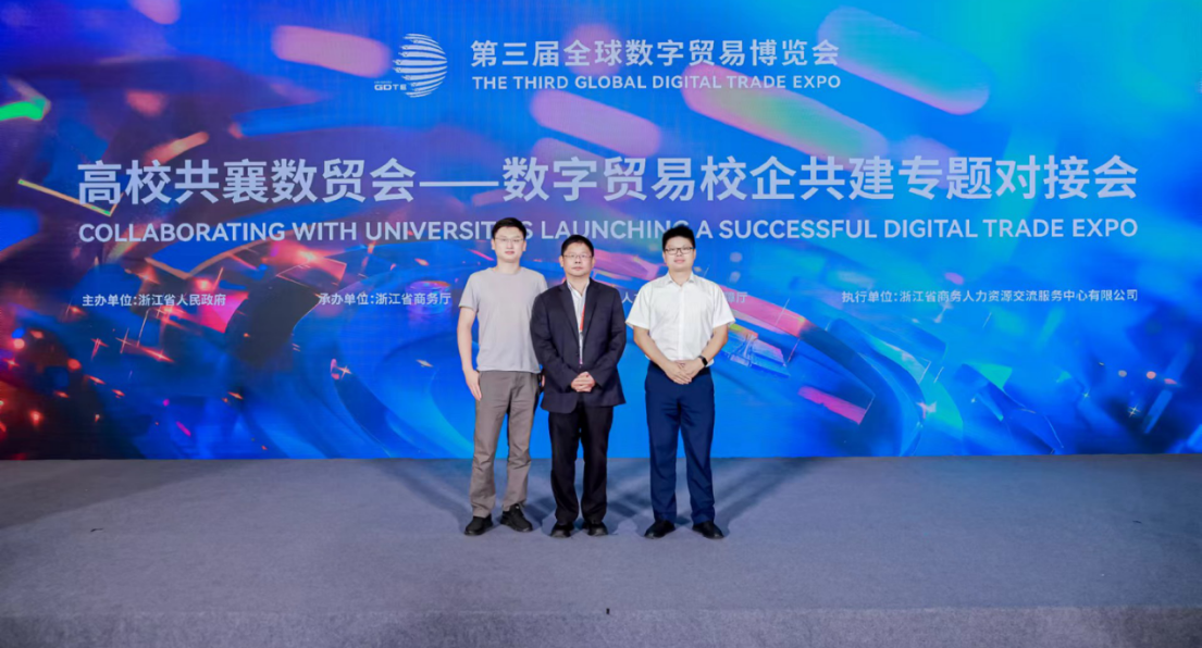 近日,第三届全球数字贸易博览会在杭州举办,这是国内唯一一个以数字贸易为主题的国家级、国际性、专业型展会。本届数贸会以“数字贸易,商通全球”为主题,以“国家级、国际化、数贸味”为目标定位,致力于展现全球数字贸易的最新成果和未来趋势,邀请全球数字贸易领域的专家和从业者共商合作、共促发展、共享成果。为加强数字贸易领域的学术交流,深化产教融合,推动“政校企产教研”互动循环,本届数贸会首次推出校企合作、产教融合主题方向的活动。