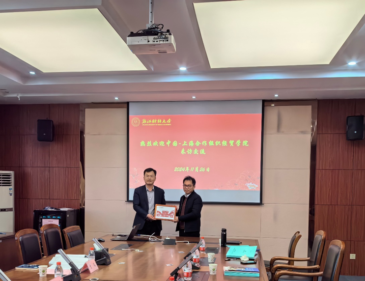 院长罗俊和国际学院柴院长分别介绍了学校相关学科专业特色、人才培养优势、以及国际学院发展情况,希望在高端商务培训、师资库共建共享、国际经贸人才联合培养等方面与上合组织经贸学院开展合作,培养国际化复合型精英人才。