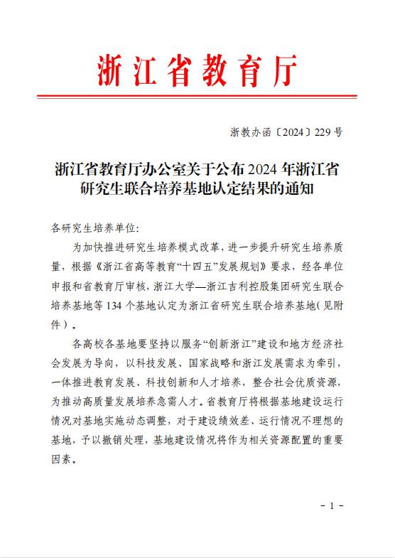 近日,浙江省教育厅办公室发布《关于公布2024年浙江省研究生联合培养基地认定结果的通知》,a漫