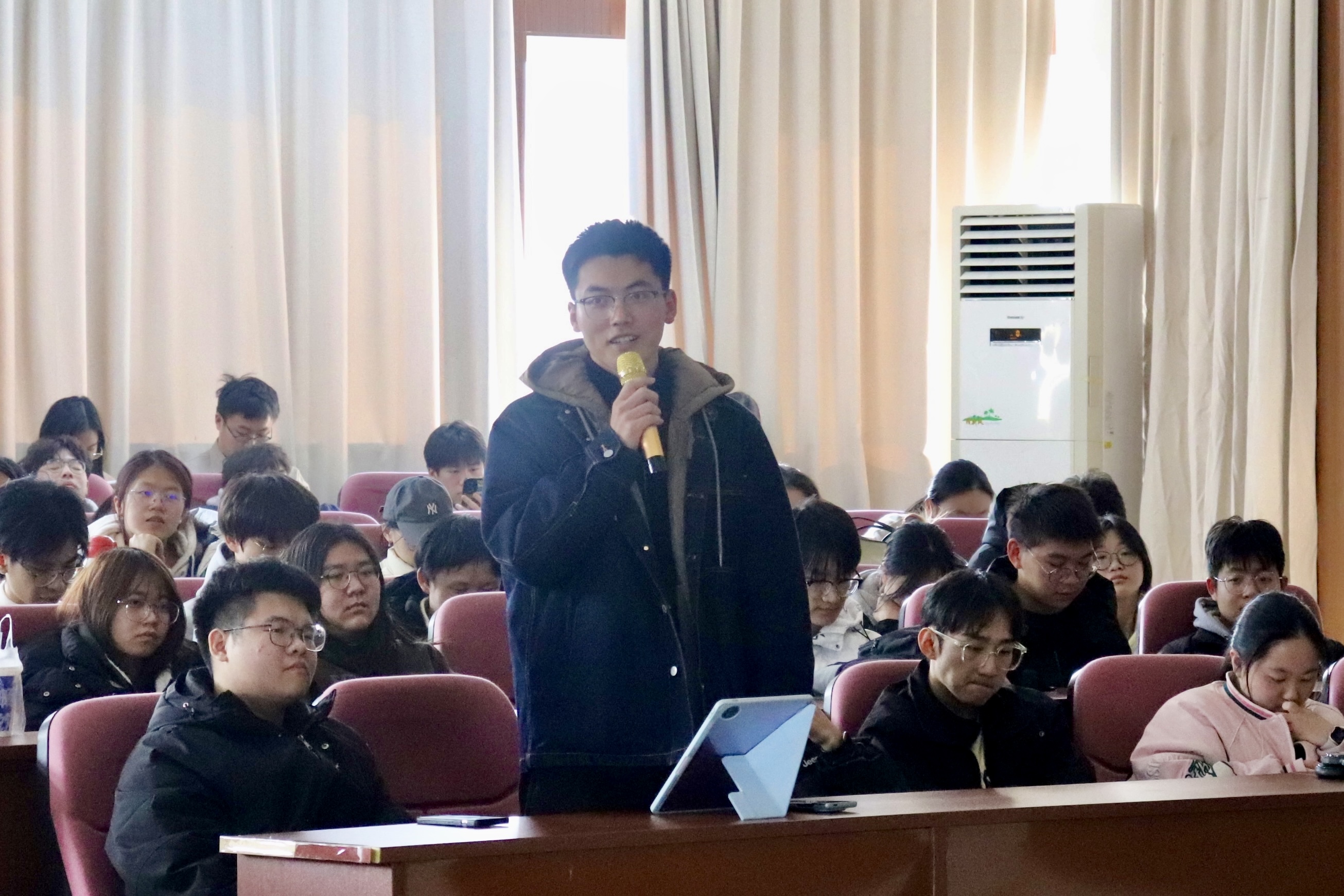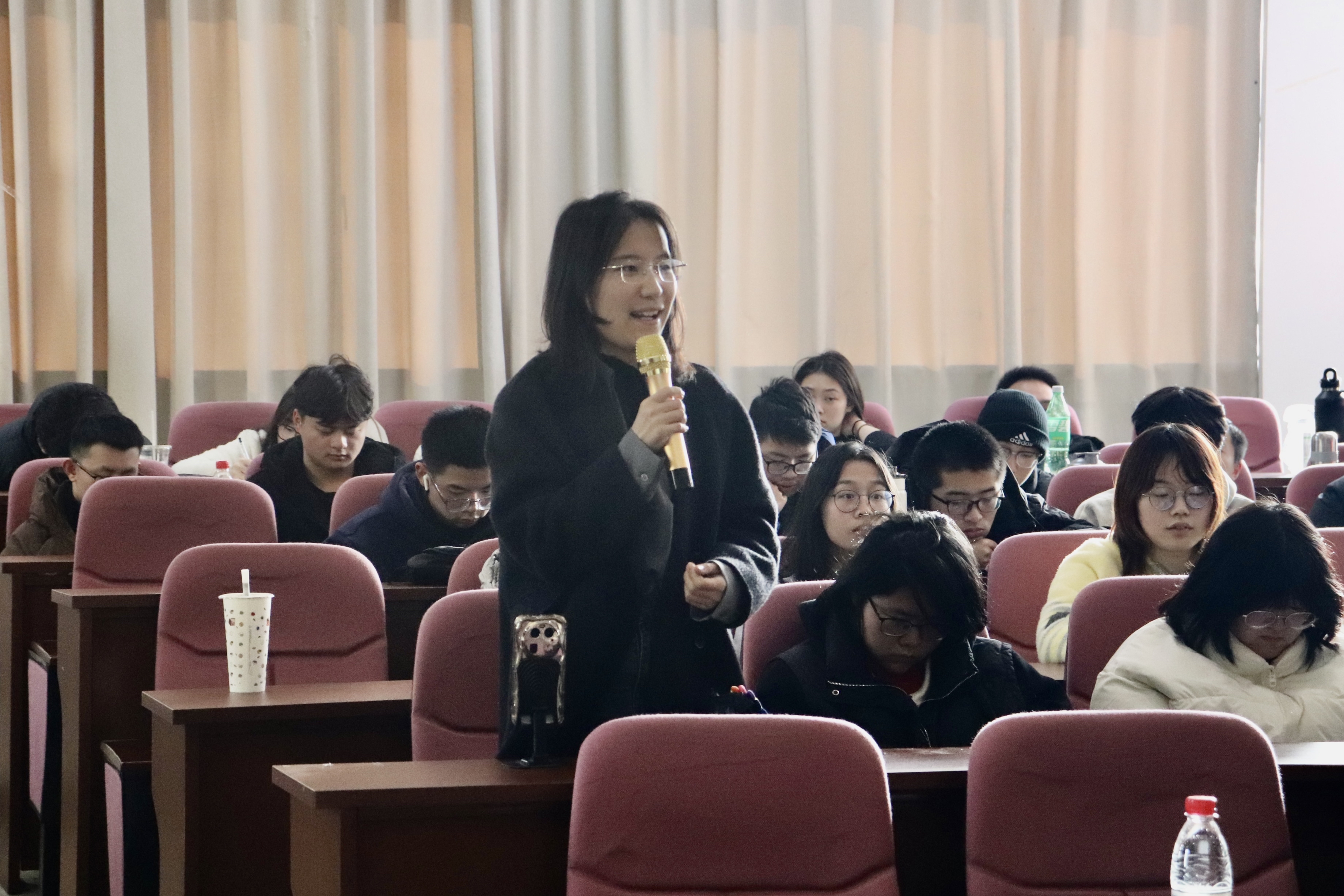 在交流互动环节,来自24数字贸易创新1班陈庆煜认为旅行和记录生活能够让自己感到幸福,并和大家分享了自己的幸福密码。23经济学创新班的刘小鸣认为能够从文学和历史相关书籍中探寻幸福的秘诀。a漫