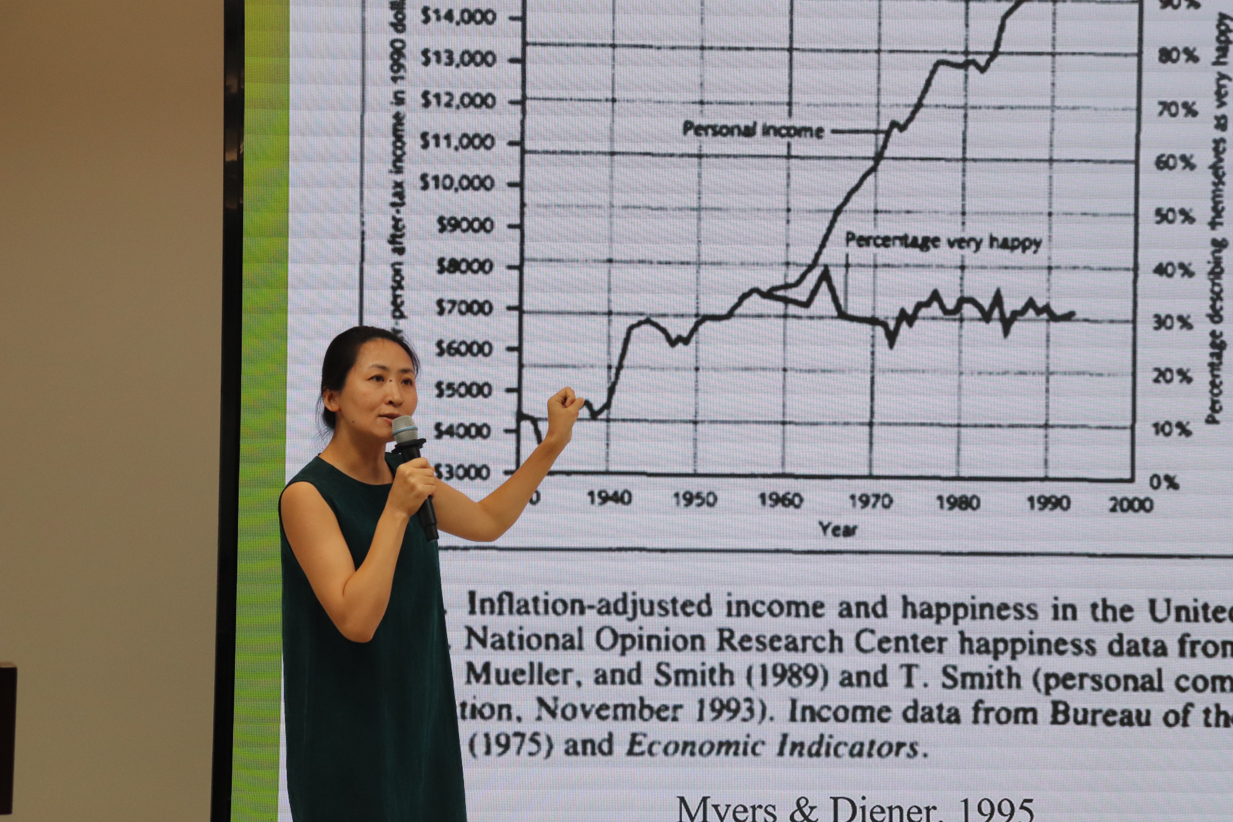 副教授李佳慧以 “原来幸福有套路” 为主题,结合丰富的经济学专业知识,为同学们带来了一场别开生面的讲座。李老师用生动的案例与通俗易懂的语言,将看似抽象的经济学原理与 “幸福” 这一生活话题巧妙结合,引导同学们从经济学视角思考生活中的选择与决策,让大家深刻体会到经济学并非遥不可及的理论,而是与日常生活息息相关的实用知识,现场互动频繁、不时响起阵阵掌声。
