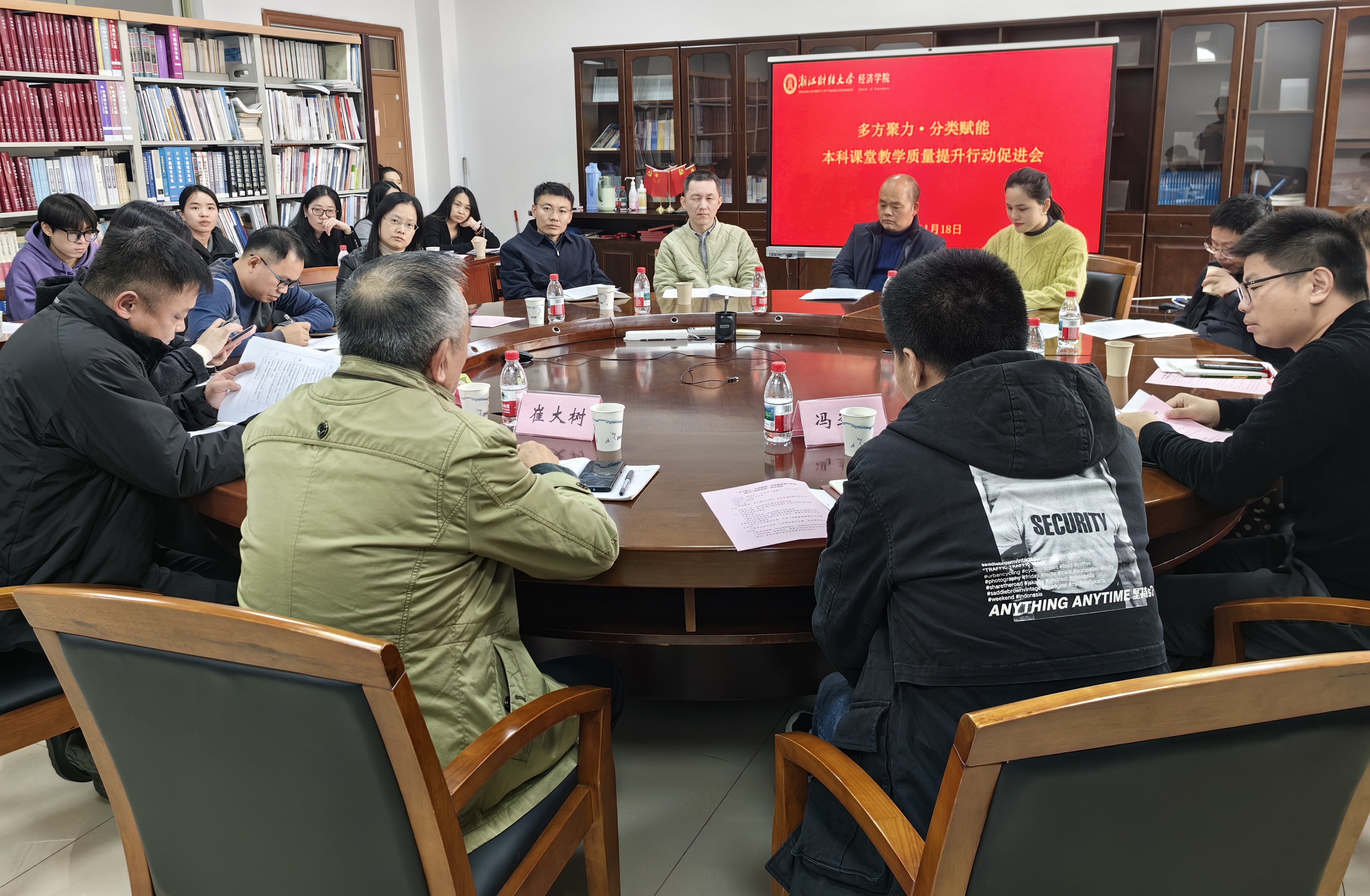 于2025年11月18日下午在6-304会议室召开“多方聚力·分类赋能”本科课堂教学质量提升行动促进会。会议由学院邓晓军副院长主持,特邀教务处李毅副处长、校本科教学督导委员会崔大树主任、教师教学发展中心王佳佳与冯李哲老师莅临指导,学院领导、教学督导组成员及教师代表共同参会,旨在凝聚校院两级力量,共同破解教学难题,部署全面提升行动。