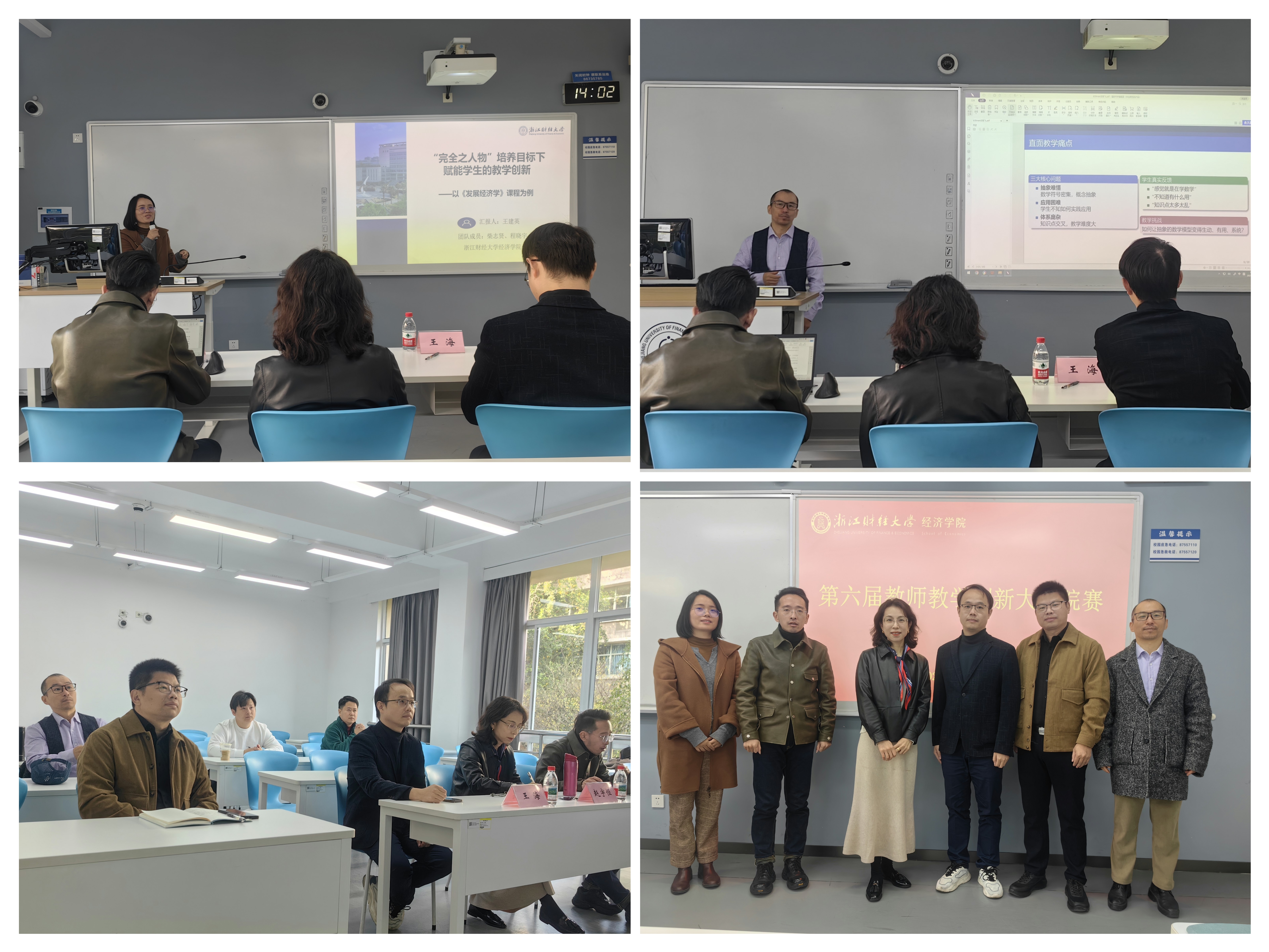 本次院赛共有两位教师进行教学创新成果展示。王建英老师以“‘完全之人物’培养目标下赋能学生的教学创新”为题,结合其主讲的《发展经济学》课程,分享了如何在教学中融入赋能理念,促进学生全面发展的创新实践。邓燕飞老师则聚焦于“中国特色数理经济学教学创新”,汇报了其长达七年的探索,展示了如何基于板书回归与数字融合,构建具有中国特色的数理经济学教学体系。两位教师的汇报紧扣大赛主题,充分展现了a漫