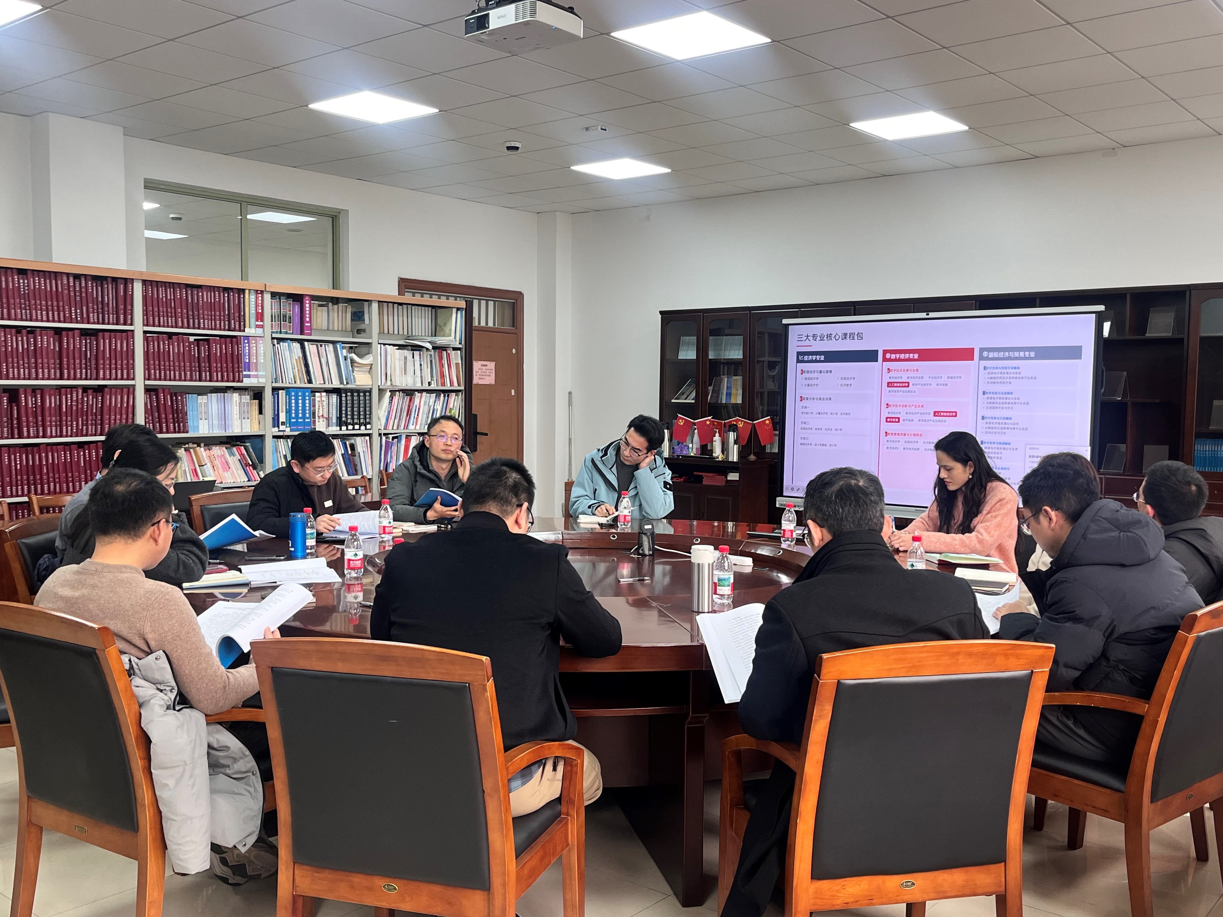 会议围绕经济学、数字经济、国际经济与贸易三大专业的核心课程包设计与专业基础平台建设方案进行了深入研讨。各专业负责人就本专业“一生一方案”的课程体系架构、特色模块设置及与“K+MAQ”人才画像的契合度进行了详细汇报。与会人员就如何通过课程包组合实现个性化培养、如何夯实平台基础以支撑学生多元化发展等关键问题展开了热烈讨论,并初步明确了各专业平台的核心课程模块与特色赋能方向。经济学专业聚焦人工智能经济、低空经济、民营经济、产业经济四大方向,数字经济专业设置“数字经济发展”与“数字产业经济学”双模块,国际经济与贸易专业突出数字贸易与“浙商出海”特色,旨在通过模块化课程组合满足学生个性化发展需求。