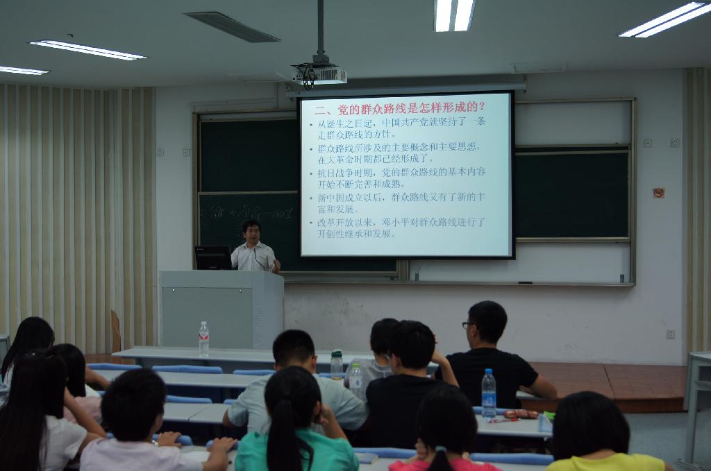 随后,校思政部部长、人文学院教授华正学老师给与会人员做了一场关于党的群众路线的专题讲座。他首先简要介绍了学校党委学习党的群众路线教育实践活动的要求及举措。华老师指出要明确开展此次党的群众路线教育实践活动的意义,坚持群众路线是“立党之本、执政之基、力量之源、兴国之要”,它回答了“为了谁”的问题,为党的工作点明了方向。他还特别讲解了当前党建工作在群众路线方面出现的问题及深入开展党的群众路线教育实践活动的意义。对于如何搞好a漫