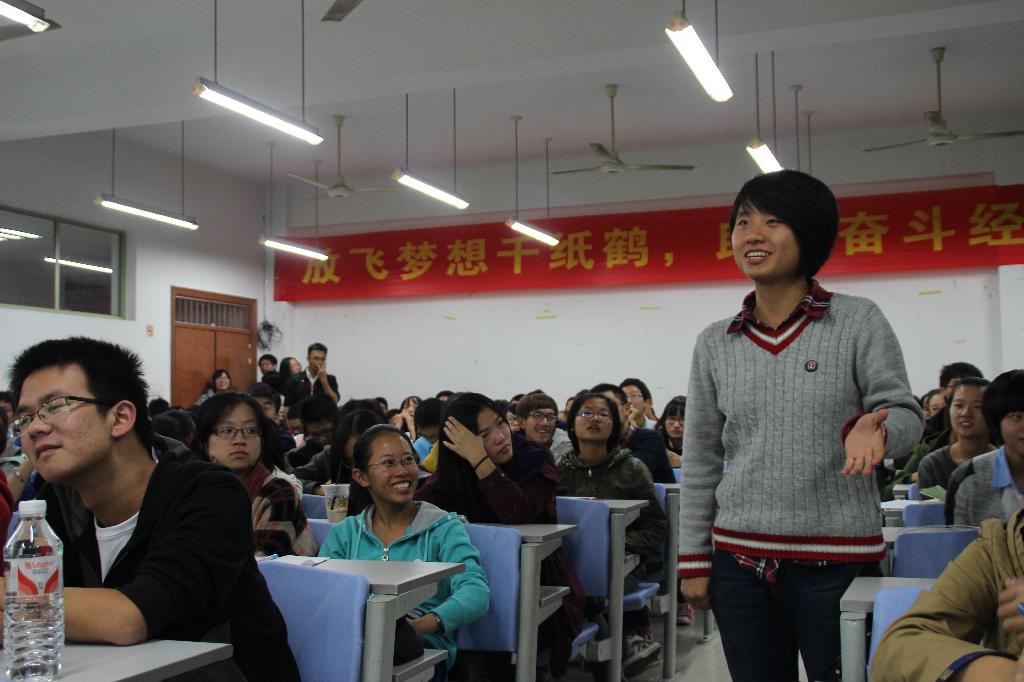 梦想课堂上孙科杰率先开讲,“留点什么记忆给我们即将失去的青春”。他说,最重要的一点是定制目标,绘制蓝图,要确定你真正想要干什么,并且朝着这个方向不断努力。学长对于大学生活的期望用了八个字来概括,即“好好学习,享受生活”。接下来由徐益钧与同学们交流。学长结合当年自身经历,与同学们笑谈大学生活。他平易近人的气质,诙谐幽默的语言,让在场的各位学员都欢笑不已。最后的现场提问环节,全李彬一一为同学们解答。学长主要针对了如何分辨是非和对错这个话题,提倡大家坚持四年去完成一件事,当坚持下来后便会拥有勇气与自信。