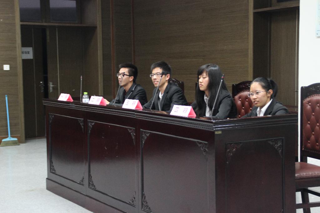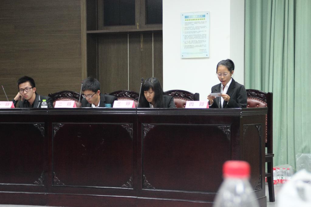 11月8日晚八点,经贸学院13级新生辩论赛决赛在法学院模拟法庭举行。13国贸一班和13国民经济班展开了激烈争夺,最后13国贸一班摘得桂冠。经贸学院团委书记汪风易、思政辅导员赵聪、谭立娟到场观看了比赛。