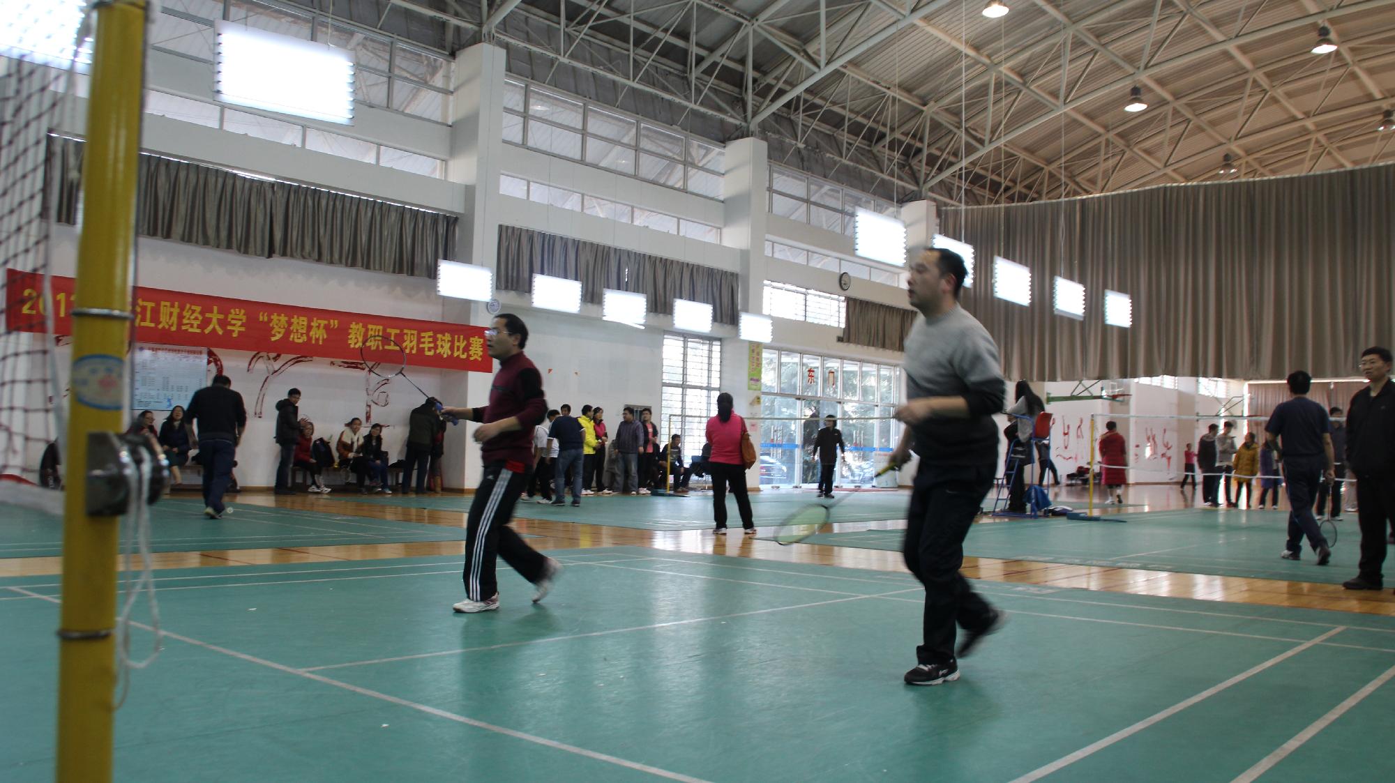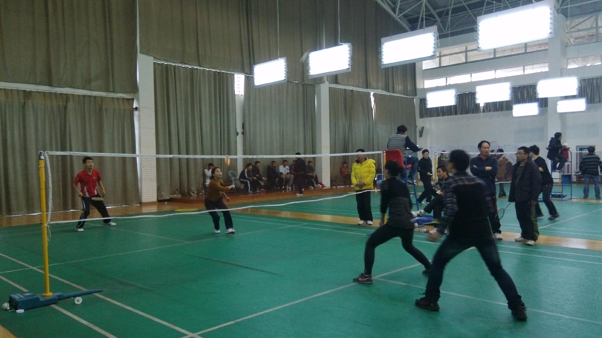 1月2日下午,我校2013年“梦想杯”教职工羽毛球比赛在东馆举行。本次比赛设有男单、女单、男双(2对)、混双五个项目,采用三局两胜制,a漫