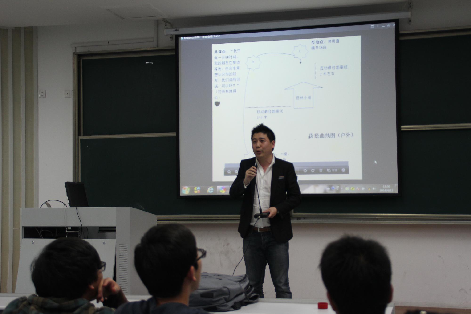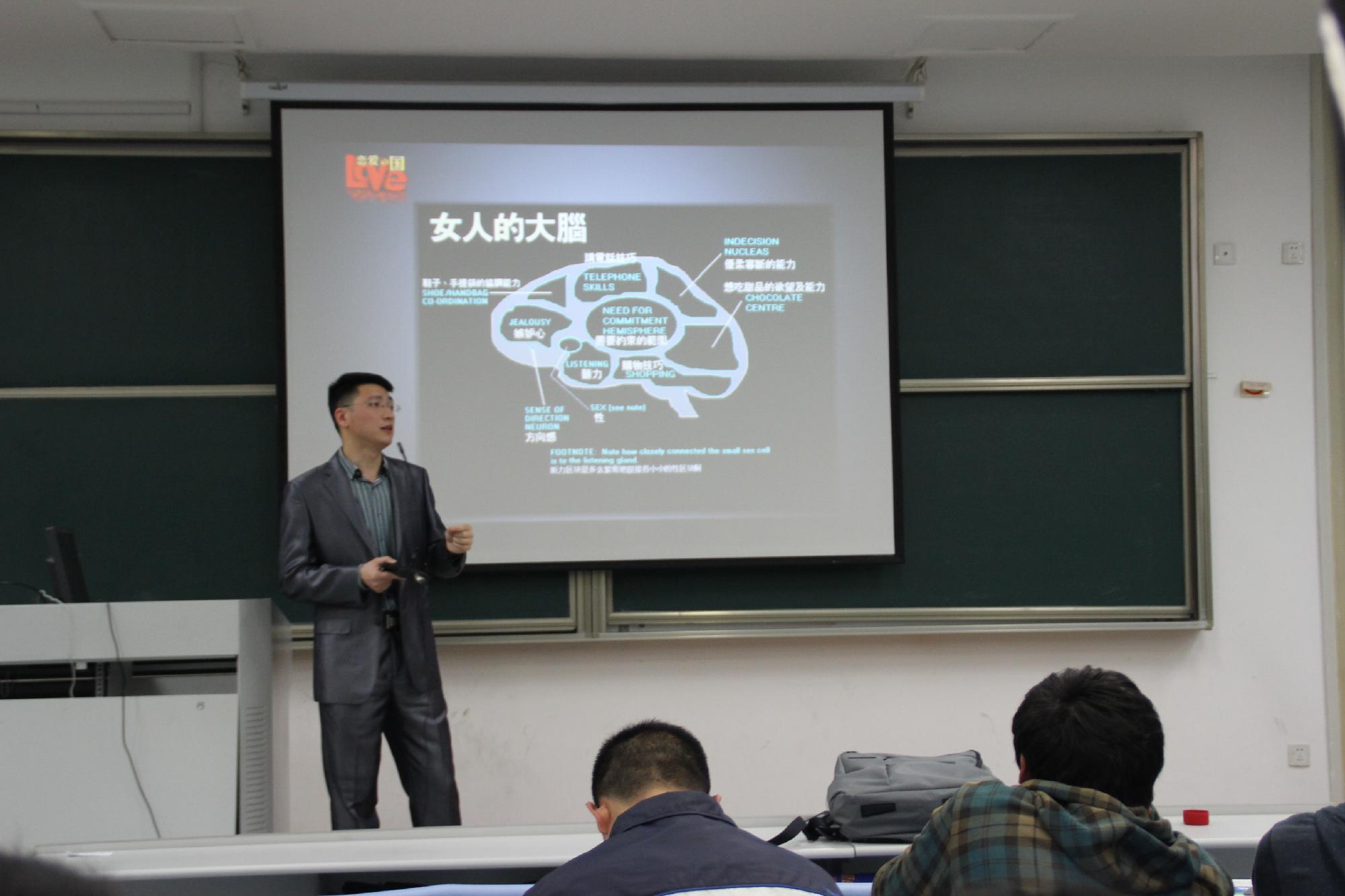 夏滨老师通过提问历史上最为著名的恋爱高手来巧妙引入培训话题——恋爱心理,然后灵活运用他的专业知识深入地分析了为什么男女生在恋爱时,对对方会有不同的反应以及两方在交往时从对方身上分别所希望得到的东西。而金益老师分别邀请了一男一女来进行“搭讪”表演,合理地展示了女生内心固有的防范意识,说明了在与人交往时所应该保持的适当距离。