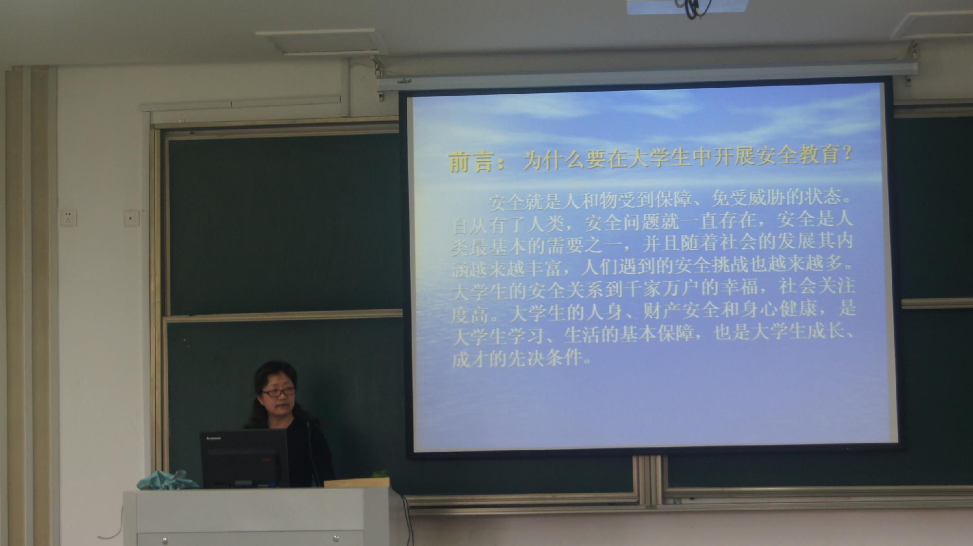 寿老师首先以“大学生的校园安全”为主题,从交通安全、宿舍的防盗防骗以及公共场所如何预防偷盗等方面,对大学生如何保证生命安全和财产安全做了详细指导。寿老师提醒大学生应注意自身的安全,提高自我保护意识,并学会在危机中细心冷静的处理问题。随后,寿老师重点提到了寝室安全的重要性,大功率电器现象屡禁不止,为寝室安全埋下了很多隐患,同学们一定要从思想上重视这个问题,切不可掉以轻心。