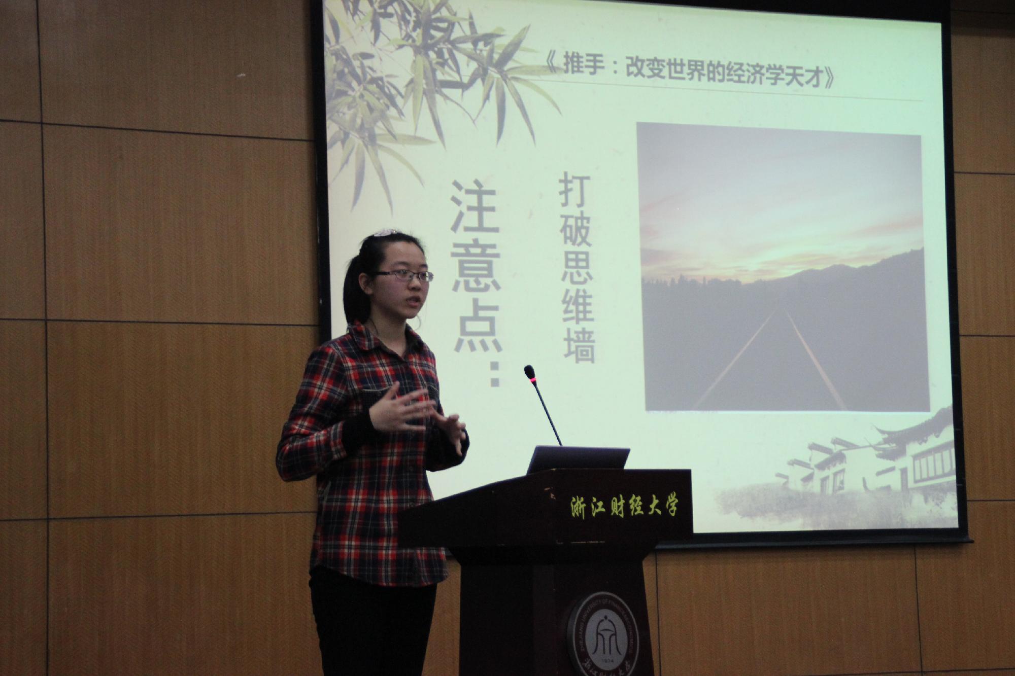 活动首先由三位学生代表分别从不同的角度分享了他们的读书经验。12会计1班的李雅欣为大家介绍了略读的步骤以及如何在阅读时保持清醒;12金融2班的任宏杰则建议大家在阅读时要注重勤记忆,常反思,多总结;12国贸2班的俞丽甜则以《推手》一书为载体,强调了在阅读时要寻找乐趣、看点,善于质疑、否定,打破思维墙。三位同学用他们的读书感悟告诉我们生有涯,知无涯,唯有与书为伴,才能成为真正的读书人。