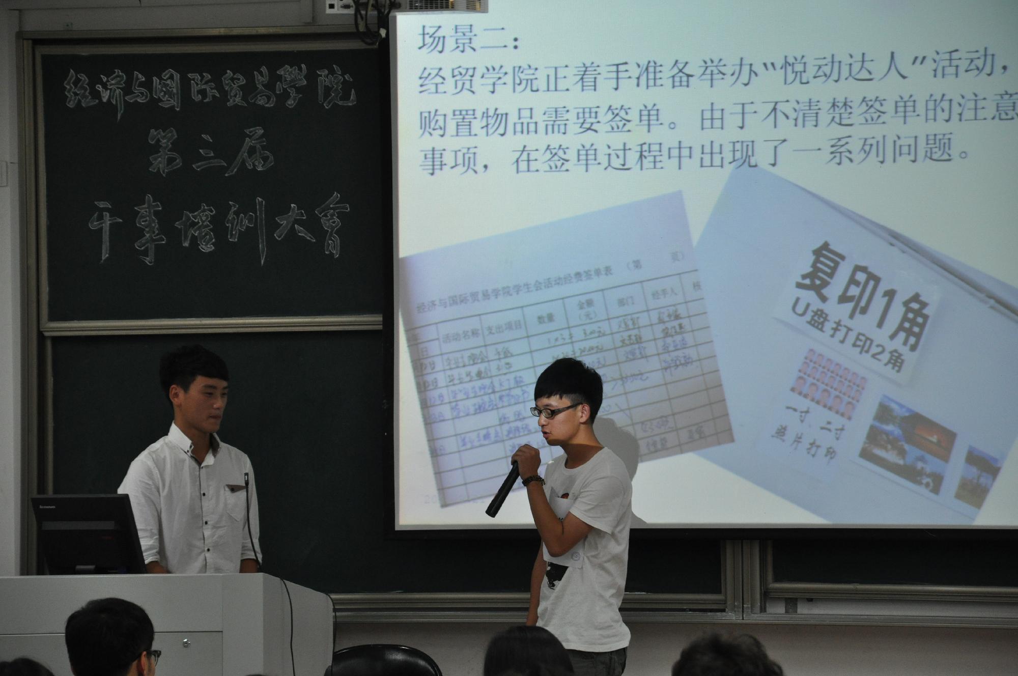 随后,团委副书记管丽雅向同学们介绍了经贸团委机构的设置,并提醒大家做事要执着专注,不断完善自己。通过情景模拟环节,干事们明白了应如何化解工作矛盾,节省工作经费等问题。紧接着,相关部门负责人向同学们介绍了学院的日常事务、公共场地审批秩序、干事考核等有关事项。最后,学生会主席金洺竹上台讲话,鼓励大家“不要怕做小事,不要怕做错事,不要怕多做事”,要真心实意为学院、为团委服务,挖掘自己的潜能。同学们也纷纷在小纸条上写下了对未来工作的期待与对自己的要求。