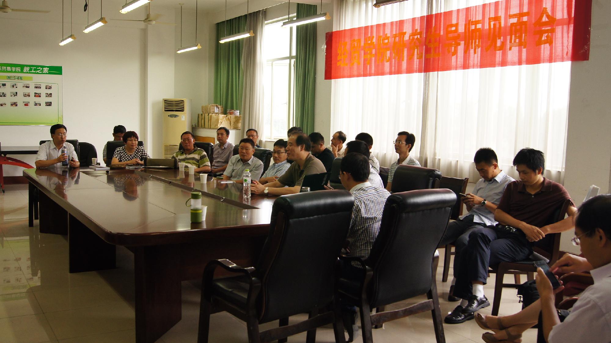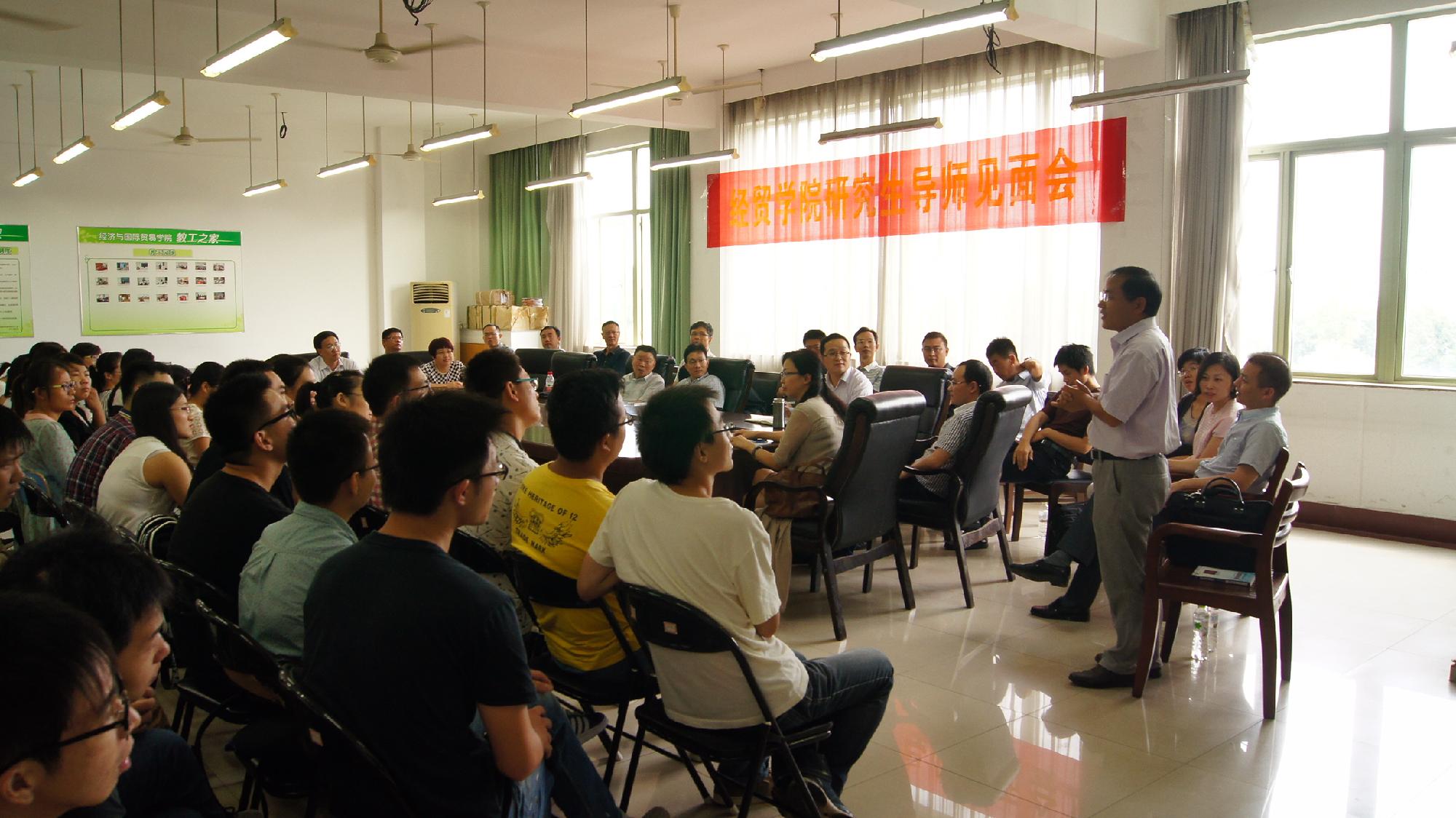2014级研究生导师见面会在经贸学院楼313会议室隆重举行。本次见面会由经贸学院范建锋书记主持,王俊豪校长,卢新波副校长,胡亦琴院长出席并讲话,经贸学院全体研究生导师和57名新生参加了见面会。