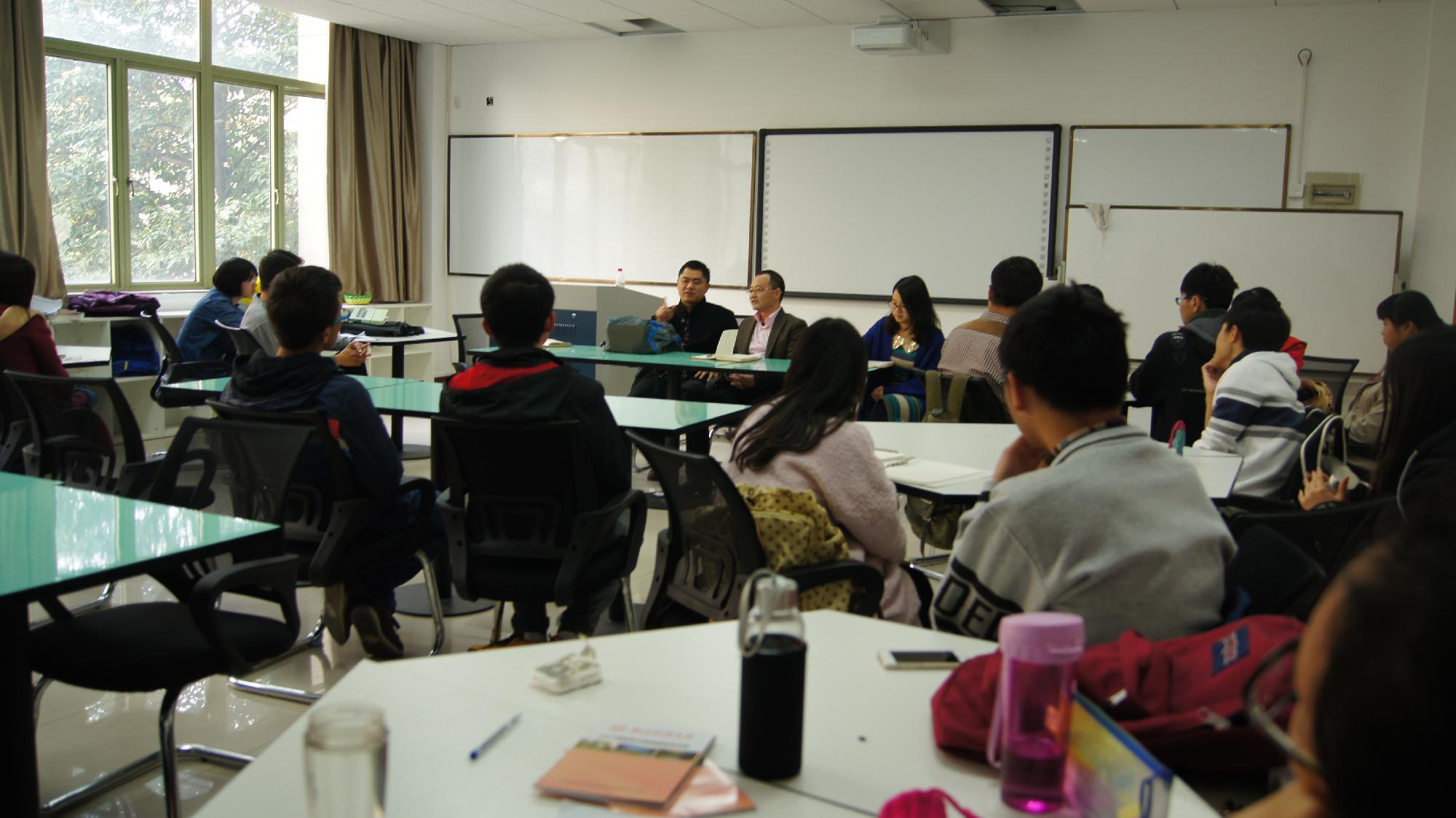 在6号楼104教室举行了2014级现代经济学实验班期中教学座谈会,座谈会的主旨是了解实验班同学的学习情况,课程设置、教学效果的评价,以及对a漫