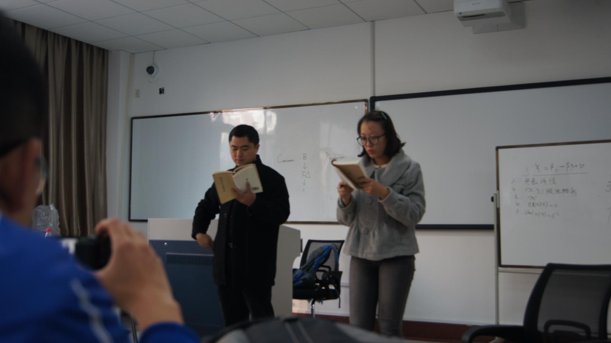 学涯湖畔,暖光映照在学院楼上,一派安详。同学们依次走上讲台,轻吟缓诵,品味经典。若有所思,这是每个同学走回座位时的共同神情,而在吟诵结束后,李老师都会对每一段内容进行解释和延伸,大家或抬头聆听或低头摘记,不觉间,大学章句已渐渐完结于声声诵读中。