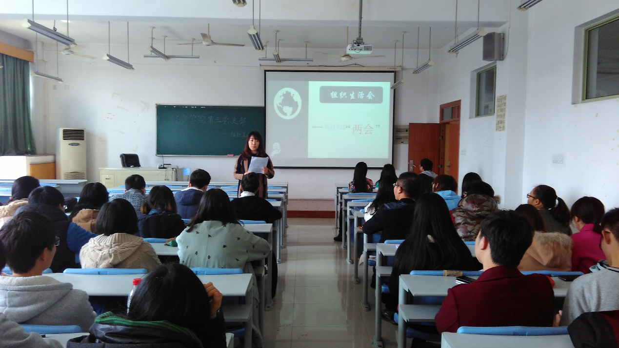 生活会以“学习两会,畅谈两会”为主题,由了解“两会”机制,领略“两会”氛围、学习2015年政府工作报告和解读“两会”热点四个部分组成。各党支部书记首先给党员们简要讲解了“两会”相关知识及“两会”召开的意义。为了更直观的感受“两会”,大家共同观看了“两会”的相关视频。其中,各支部成员就2015年政府工作报告进行了重点学习,针对报告中的重大数据、重大改革措施和新承诺进行了深入解读和探讨。而对于“两会”热点提案及与大学生息息相关的“两会”话题,如反腐倡廉、环境保护、就业创业、教育医疗改革等,大家更是畅所欲言,进行了热烈的讨论和交流。