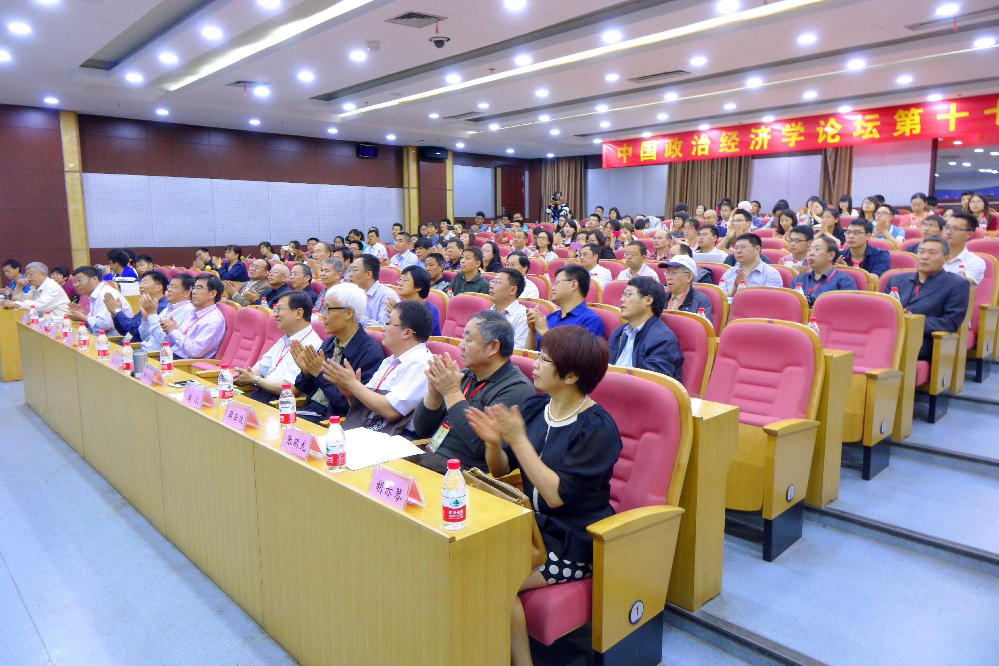 承办的中国政治经济学论坛第十七届年会顺利召开。来自中国社会科学院经济研究所、清华大学、南开大学、武汉大学、西南财经大学、山东大学、厦门大学等高校以及经济学动态杂志社、求是杂志社、经济学家杂志社、社会科学文献出版社、中国社会科学出版社、中国社科网等单位的100余名专家、学者参加了会议。校长李金昌出席会议并致欢迎词。