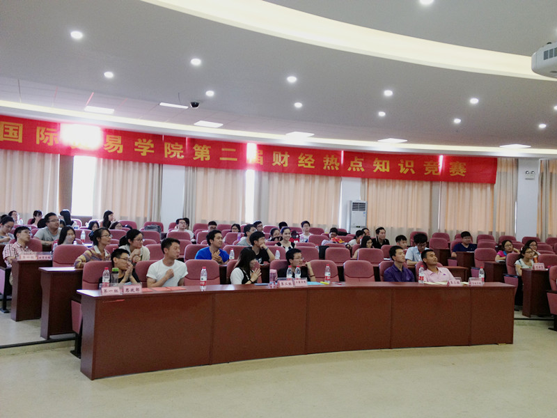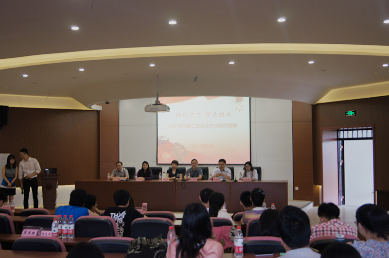 第二届财经热点知识竞赛吸引了工商学院、政府管制研究院、思政部、经贸学院四个学院共6支队伍的参赛。比赛分“必答题”、“限时题”、“抢答题”和“风险题”四个环节。“必答题”环节6支队伍不分上下,均展现了较强的专业水平和宽广的知识面,“限时题”环节考验团队选手的默契程度,现场传来阵阵掌声。整个过程紧张、激烈而又精彩纷呈。经过激烈角逐,最终经贸学院必胜客队获得冠军,BIGGER队获得亚军,思政部获得季军。