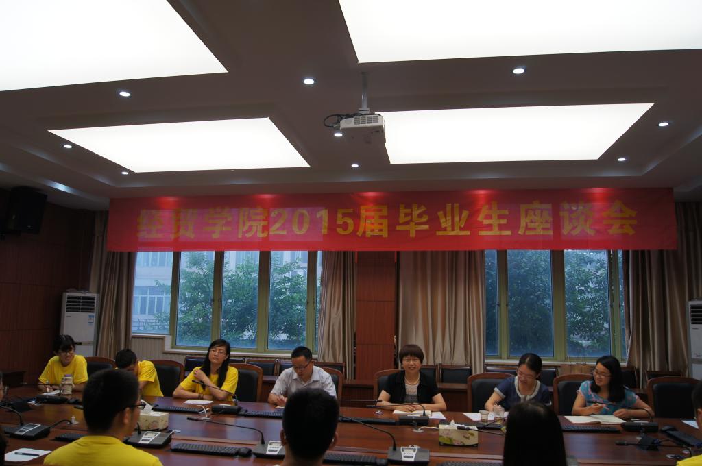 2015届毕业生座谈会在学院楼210会议室举行。院长胡亦琴,党总支书记范建锋,副院长柴志贤,党总支副书记叶秀以及学办主任崔泰铭和教学办高晓菁老师等与a漫