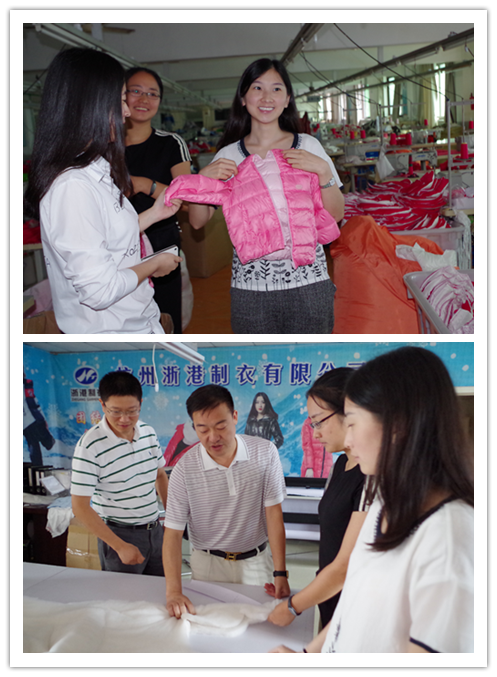 调研团参观了解萧山浙港制衣有限公司幼童羽绒服制作流程
