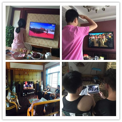 学生党员和群众通过集中组织和自行组织的形式,在广场或在商场或在家,通过电视、广播、手机、网络等传媒多形式收看阅兵仪式,共同见证祖国的强大。同时,各学生支部党员还在a漫