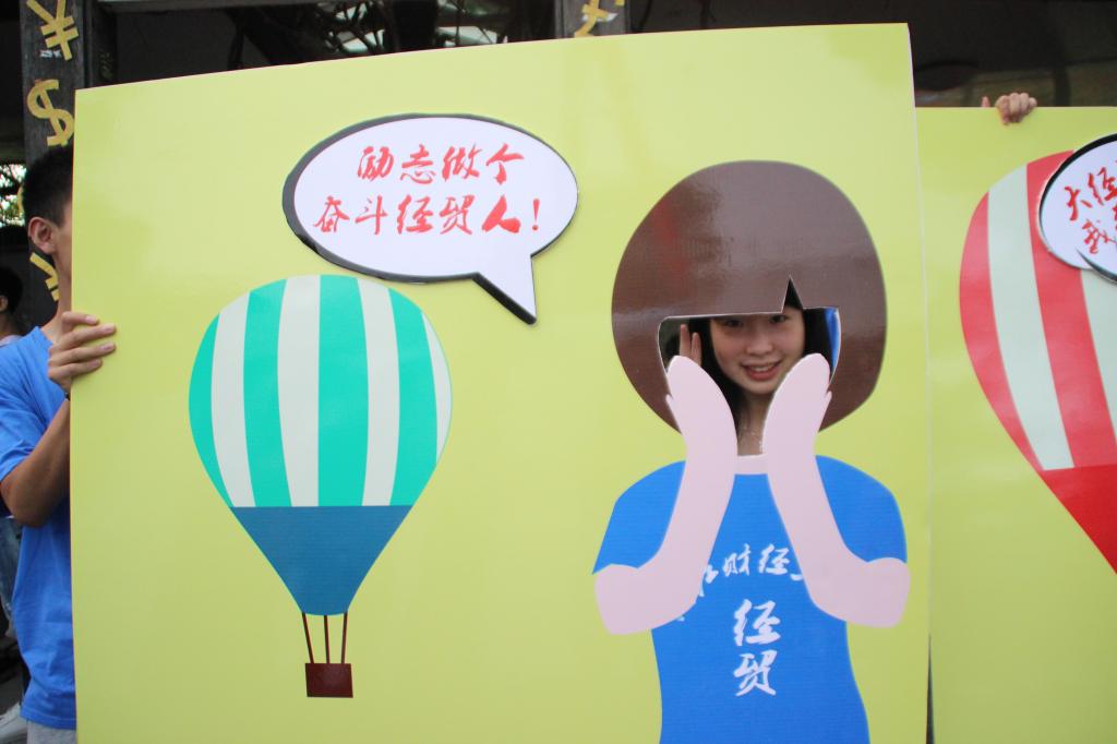 特别推出了互动环节——与人形KT板合影,并有工作人员为新生们拍下进入大学后第一张值得纪念的照片,也借此机会让家长与孩子一同体会上大学的喜悦。“大经贸,我来啦”正是此刻新生们的心声。