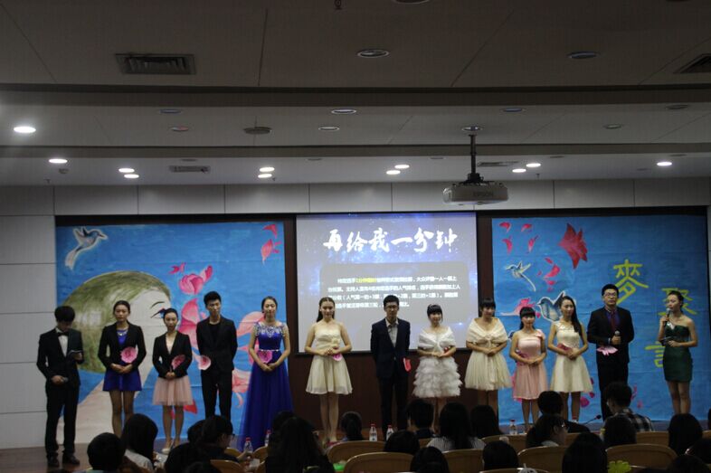 经过两个小时的激烈角逐,最终,来自15国贸3班的杜美迪凭借其丰富的主持经验和稳定的发挥,赢得本次大赛的金话筒奖,并将代表a漫